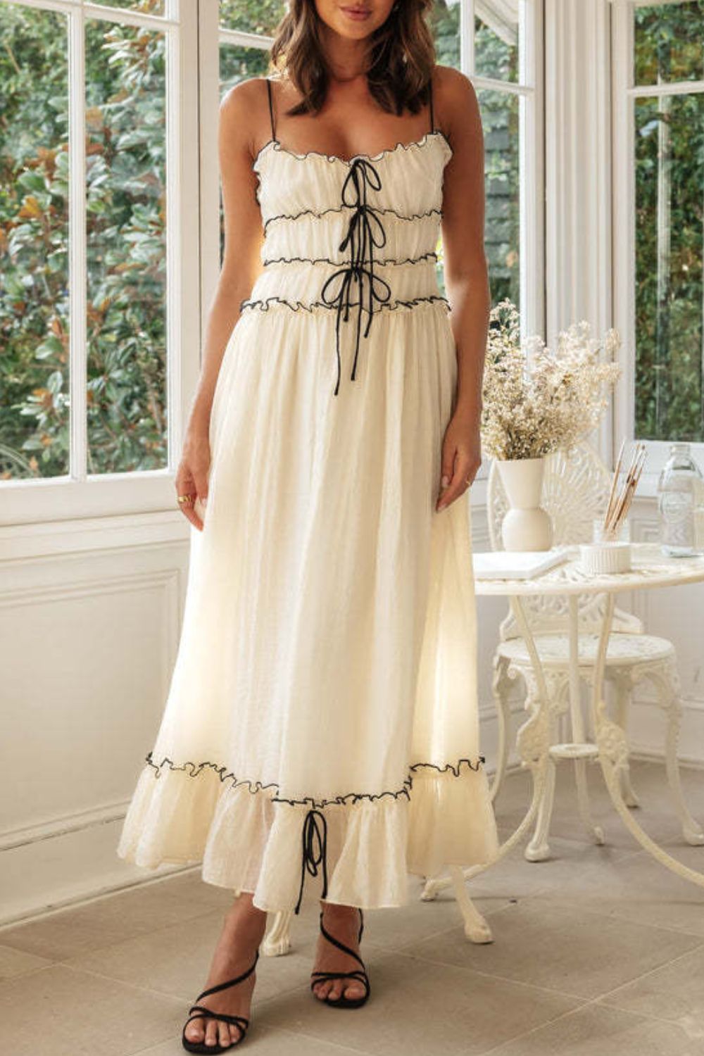 Frill Tied Front Midi Cami Dress