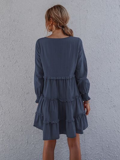 Frill Tiered Long Sleeve Mini Dress