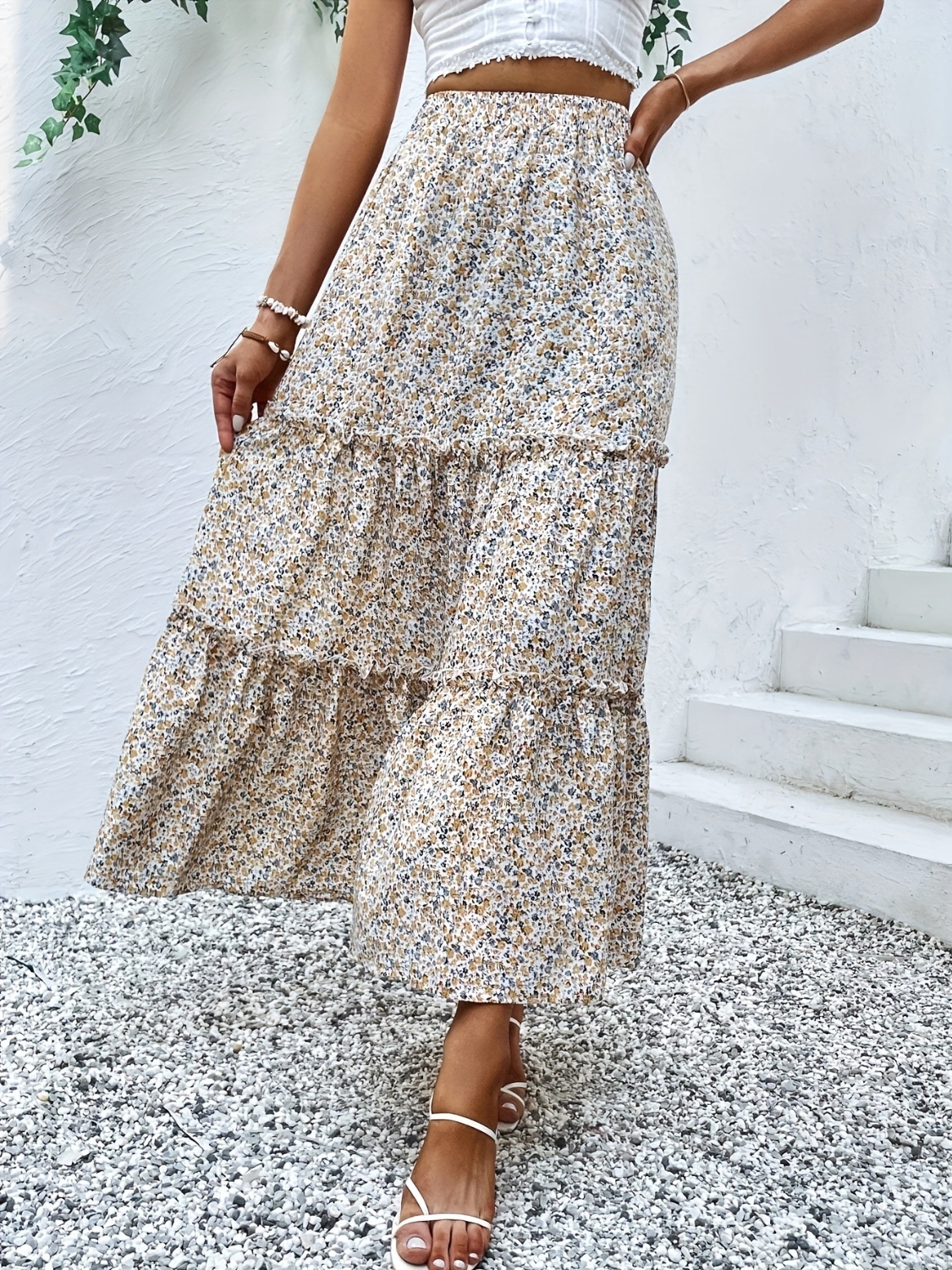 Frill Tiered Printed Skirt