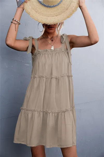 Frill Tiered Tie Shoulder Mini Cami Dress