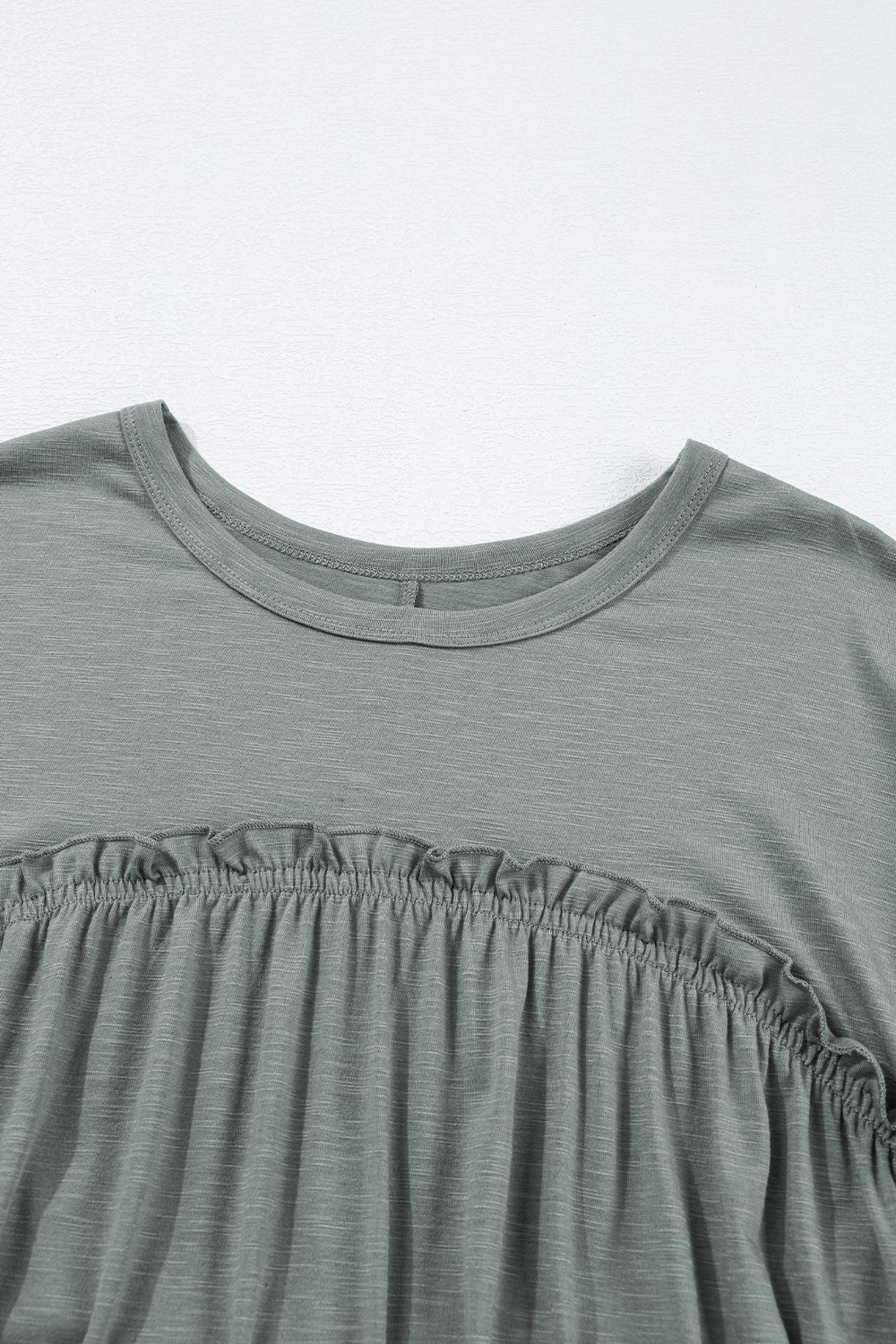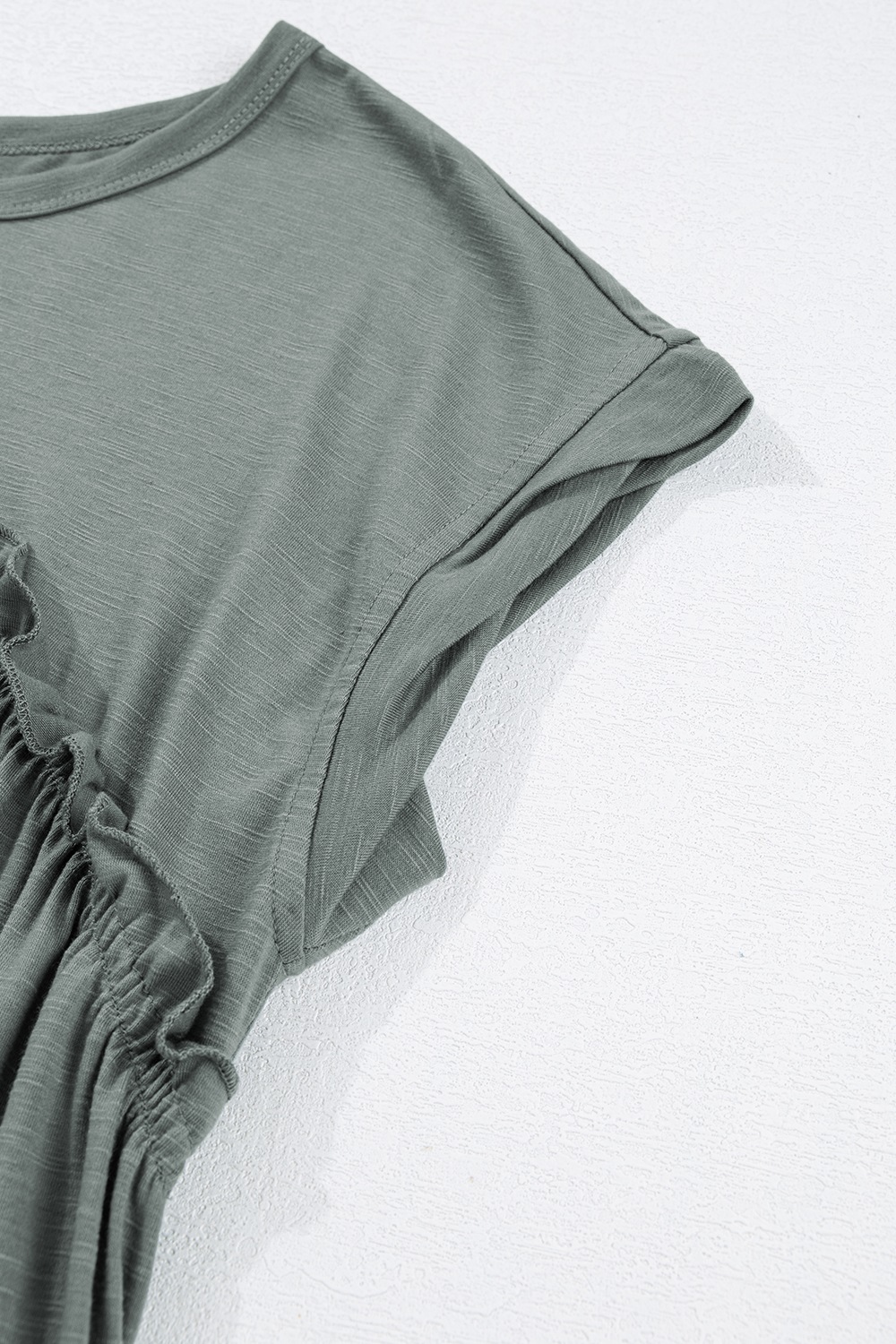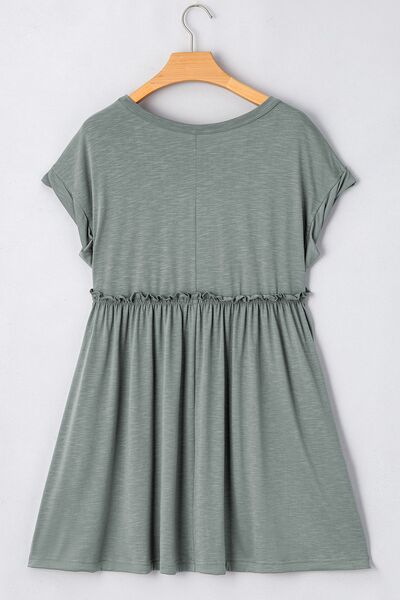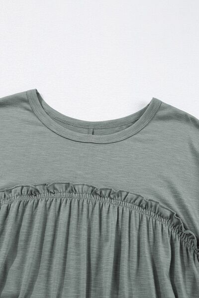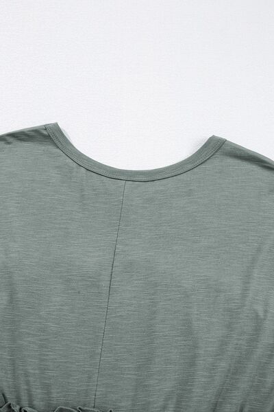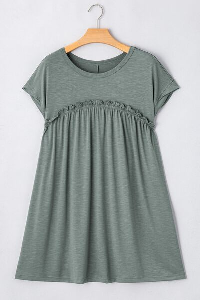 Frilled Gathered Seam Round Neck T Shirt Dress