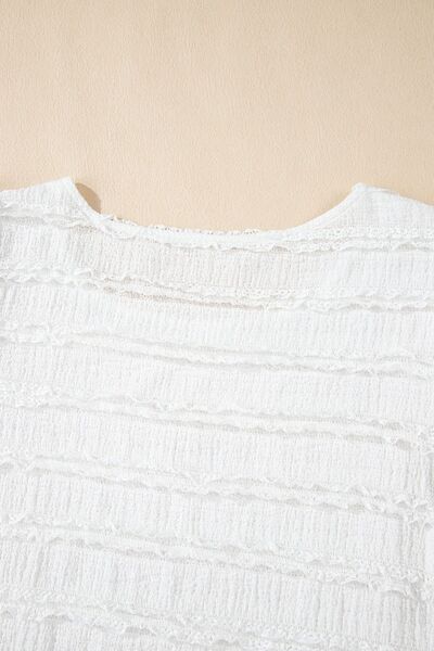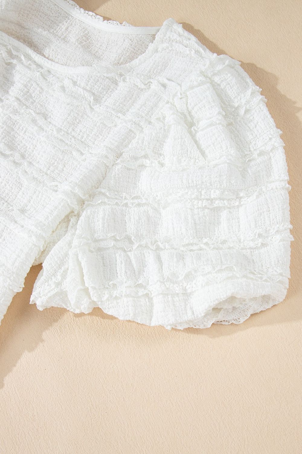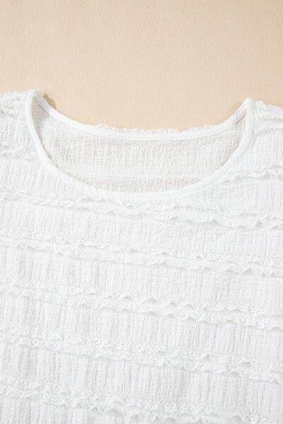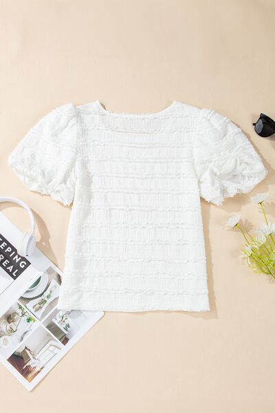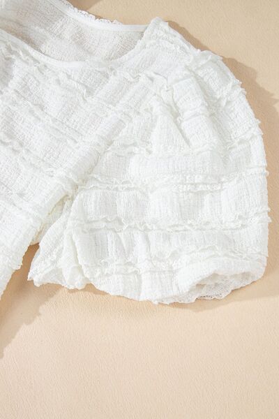 Frilled Lace Trim Bubble Sleeve Blouse