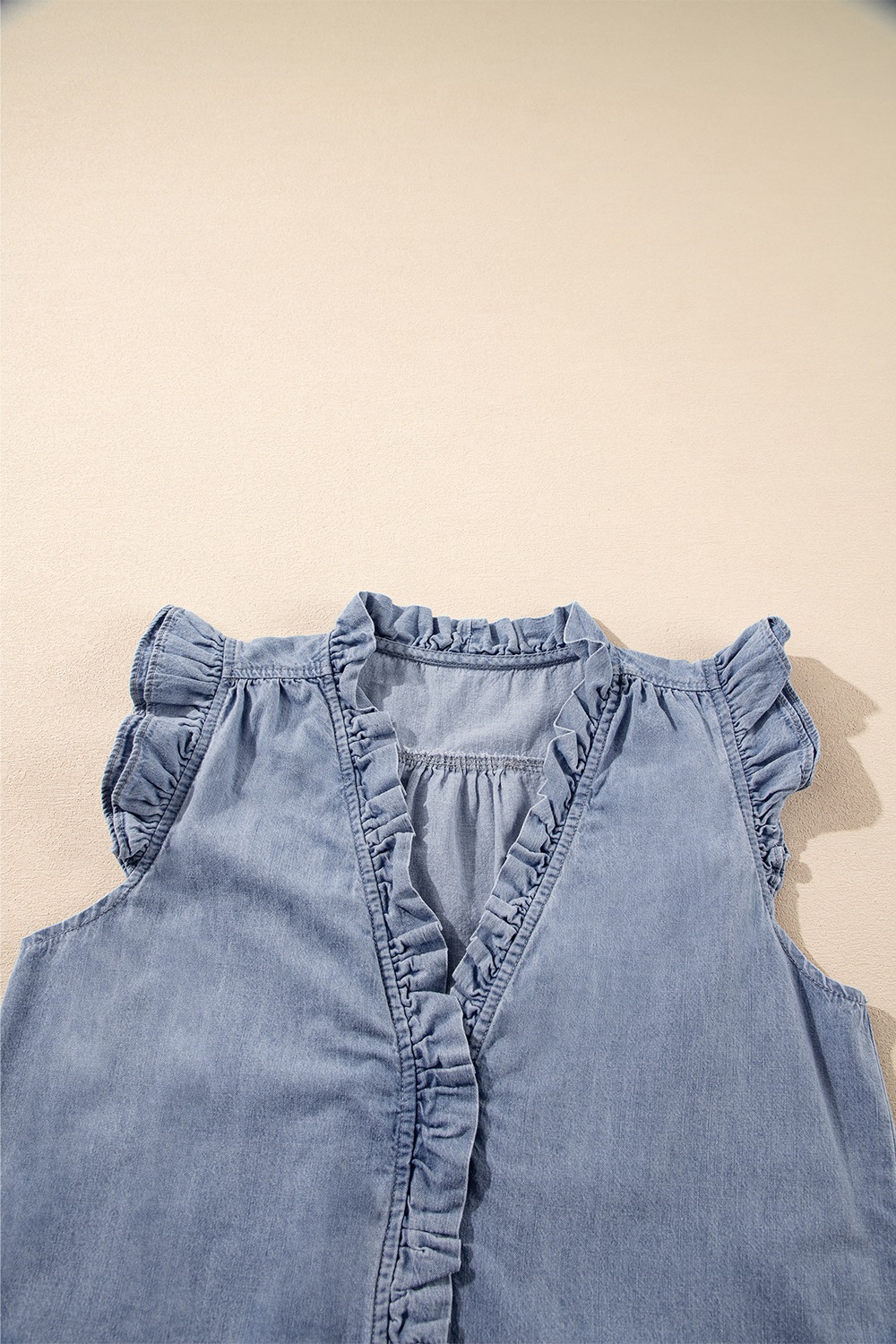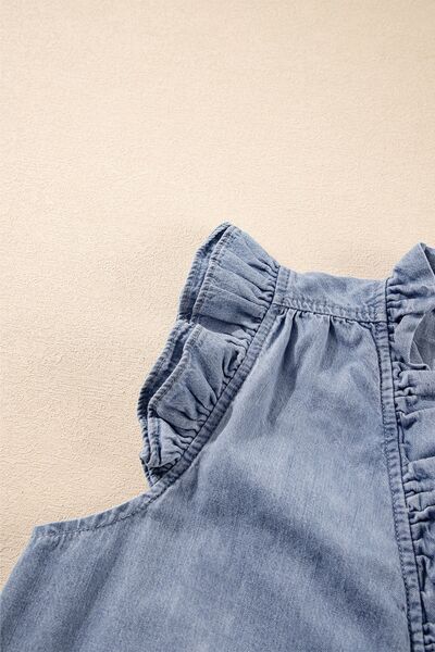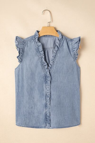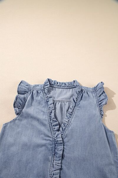 Frilly Ruffle Trim V Neck Chambray Tank