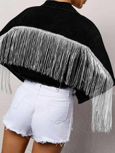Fringe Button Up Cropped Denim Jacket