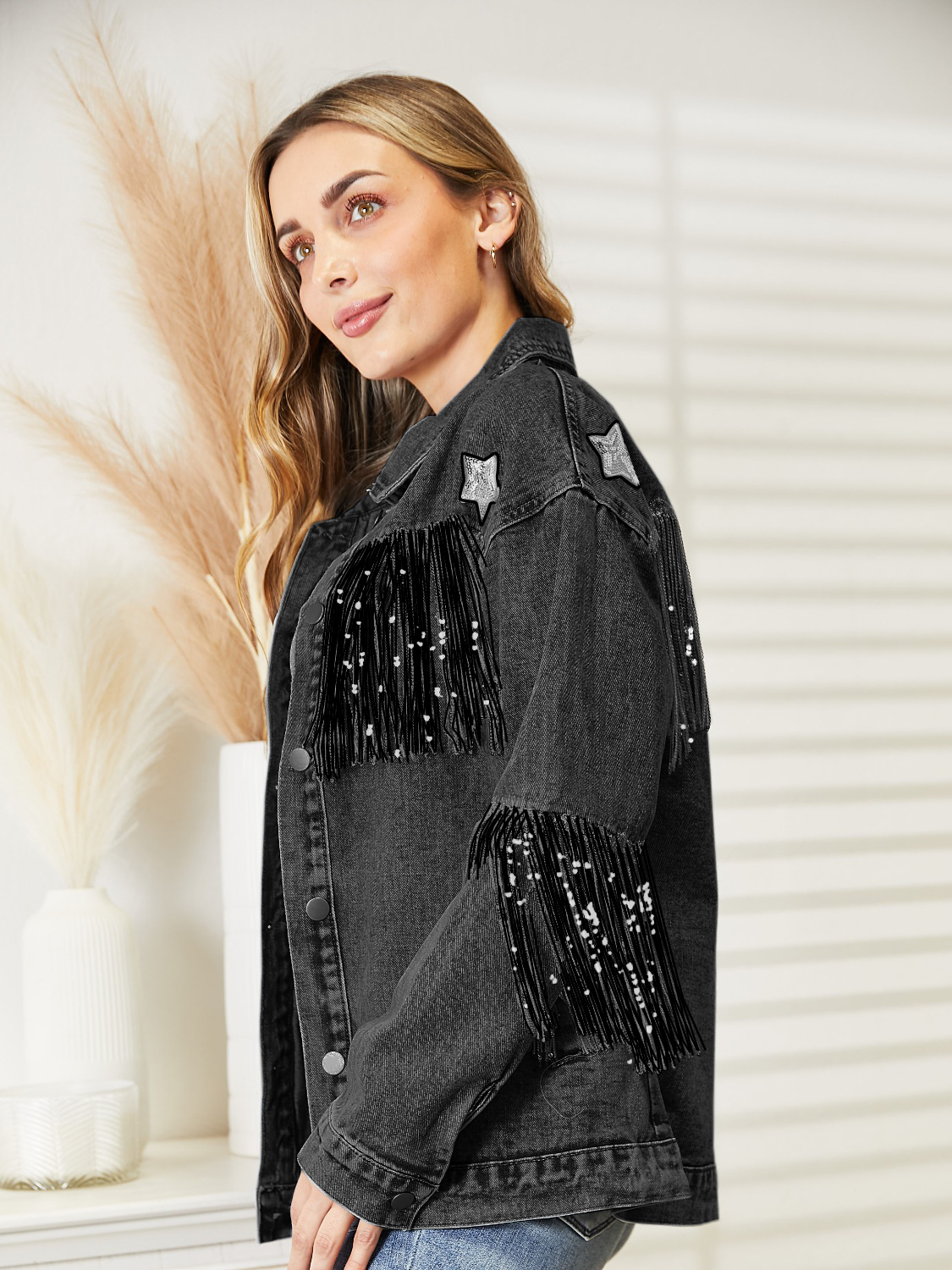 Fringe Detail Long Sleeve Denim Jacket