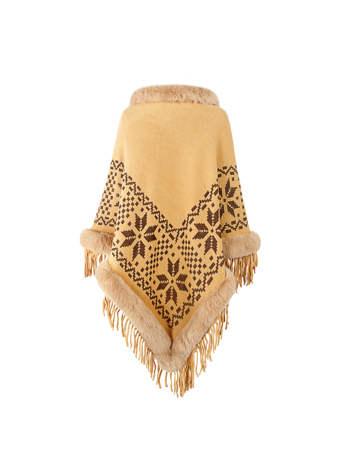 Fringe Geometric Cape Sleeve Poncho