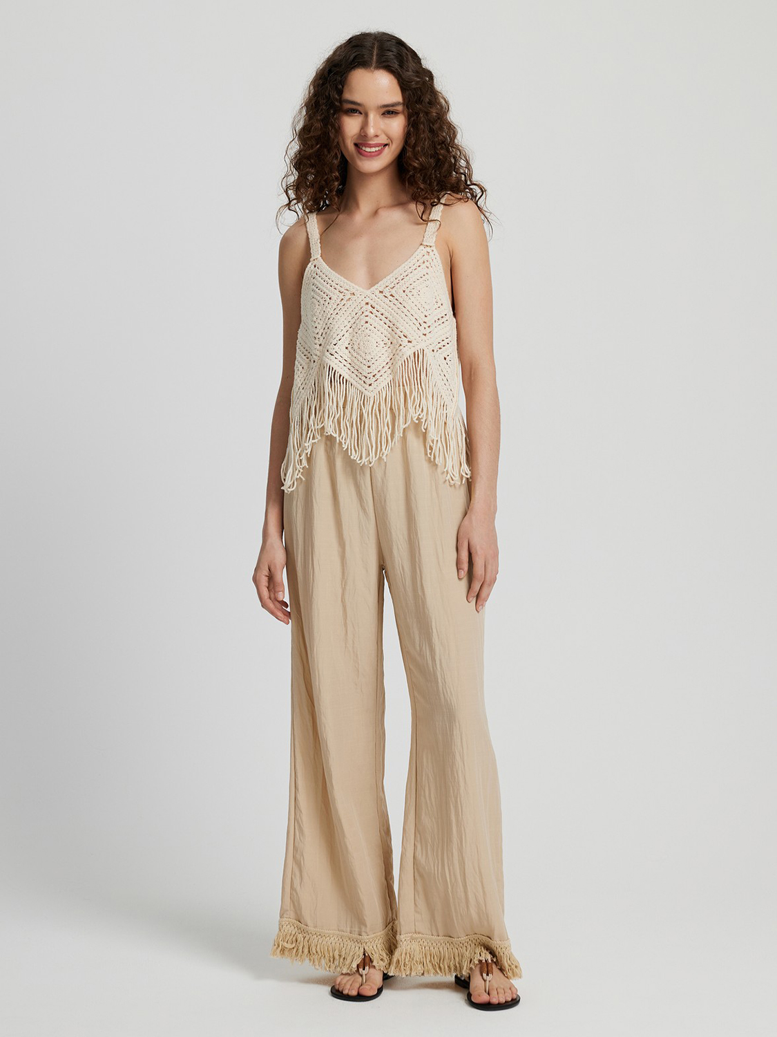 Fringe Hem Wide Leg Long Pants