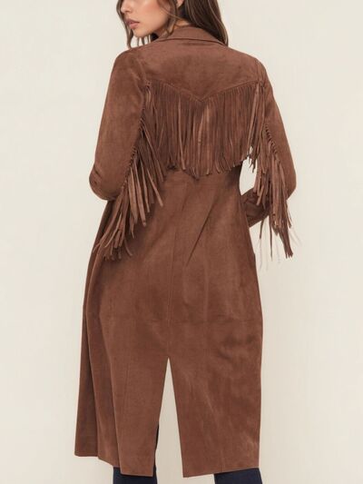 Fringe Lapel Collar Long Sleeve Coat