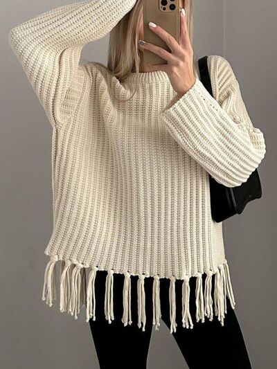 Fringe Round Neck Long Sleeve Sweater
