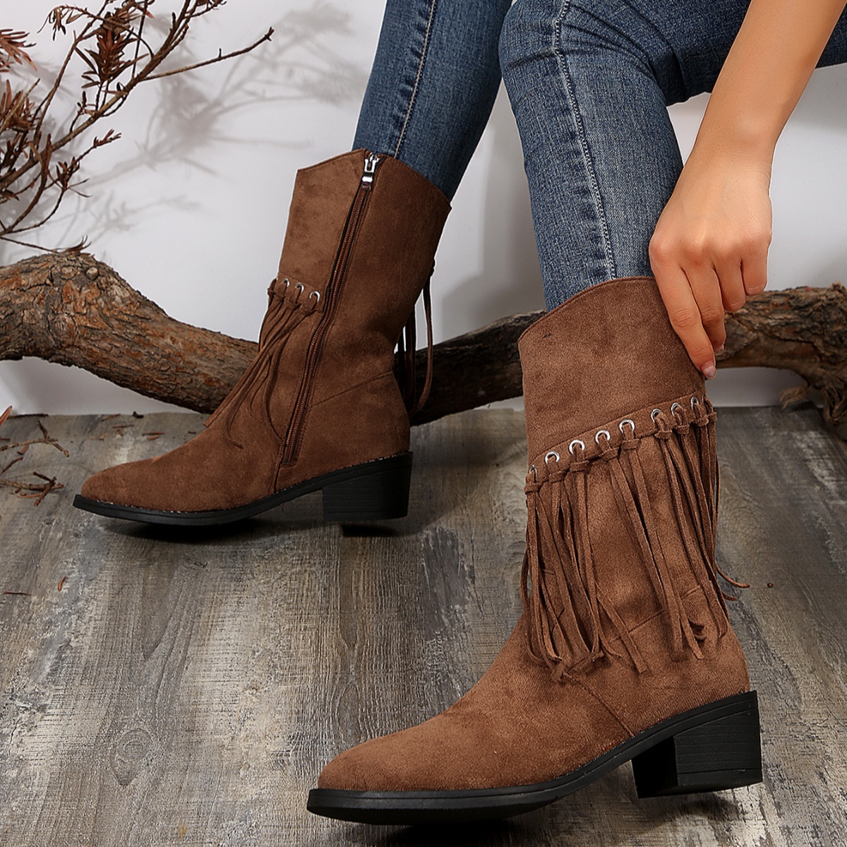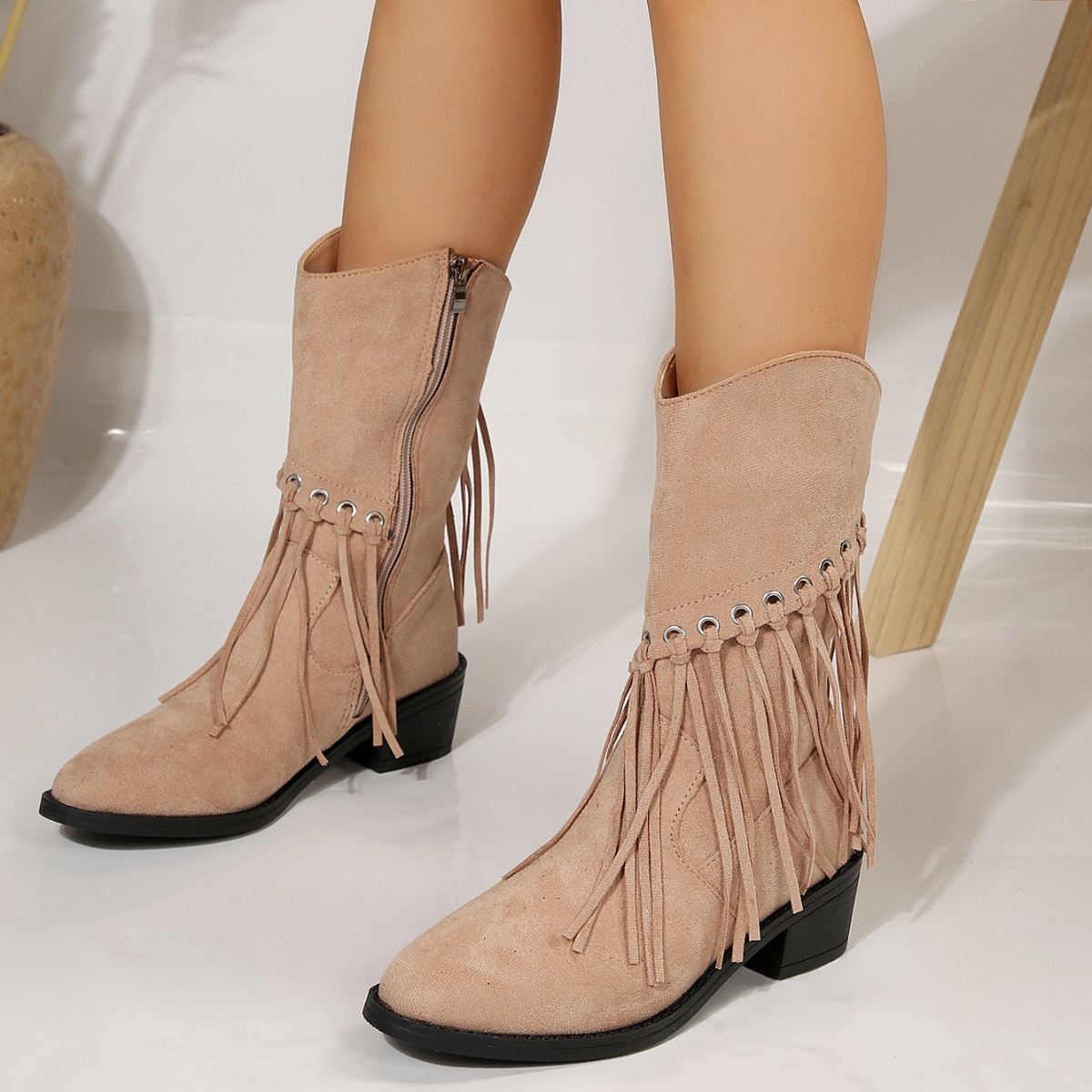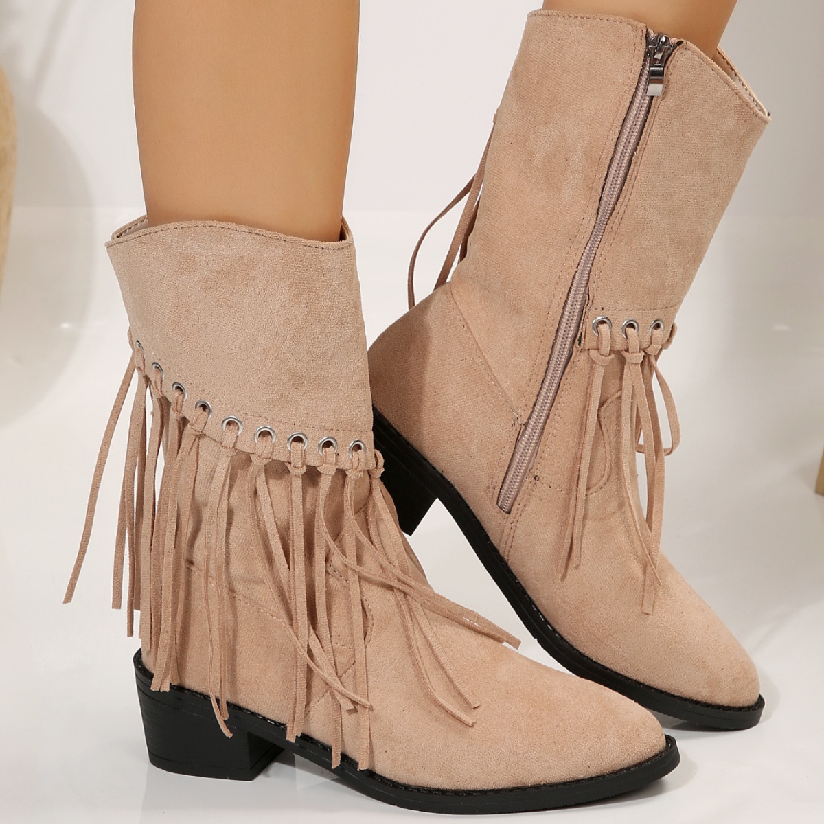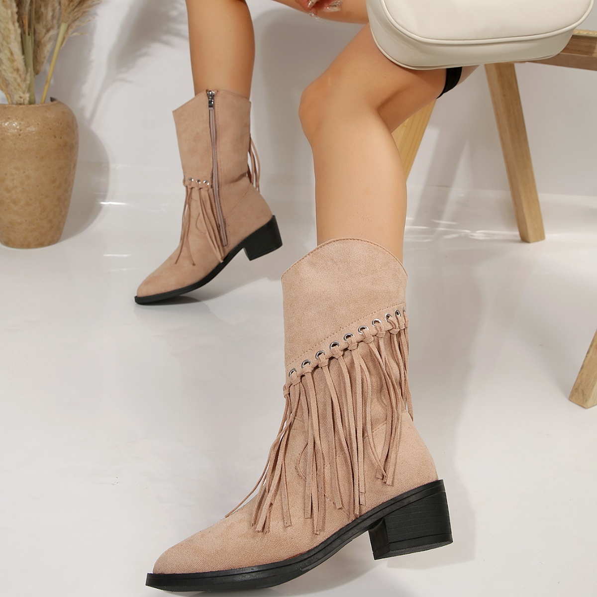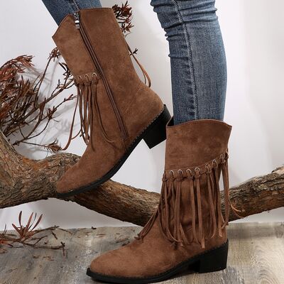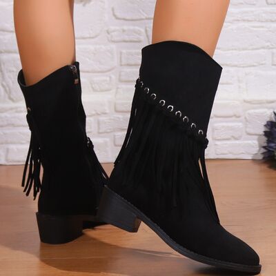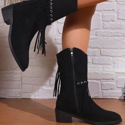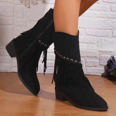 Fringe Western Block Heel Boots