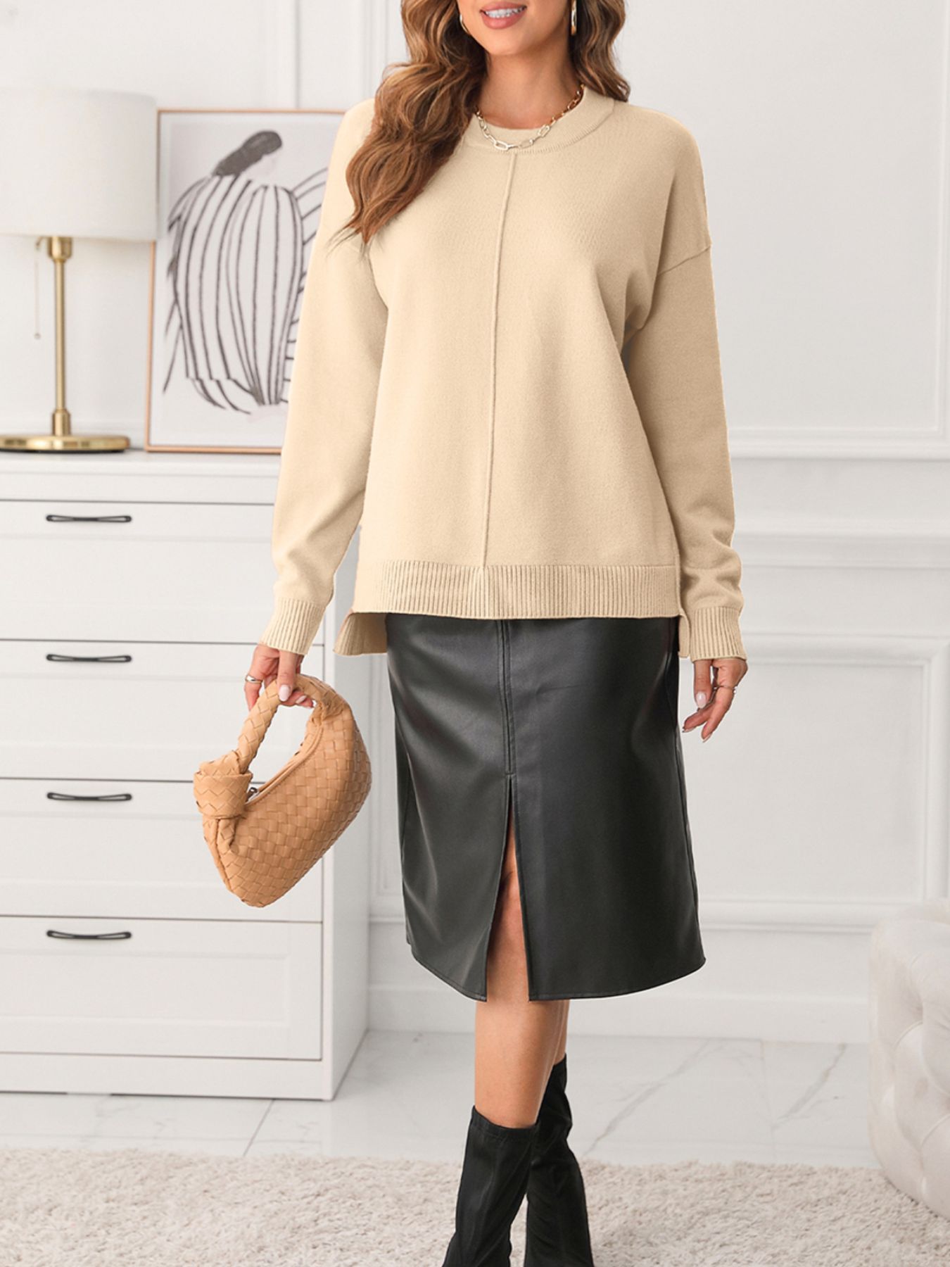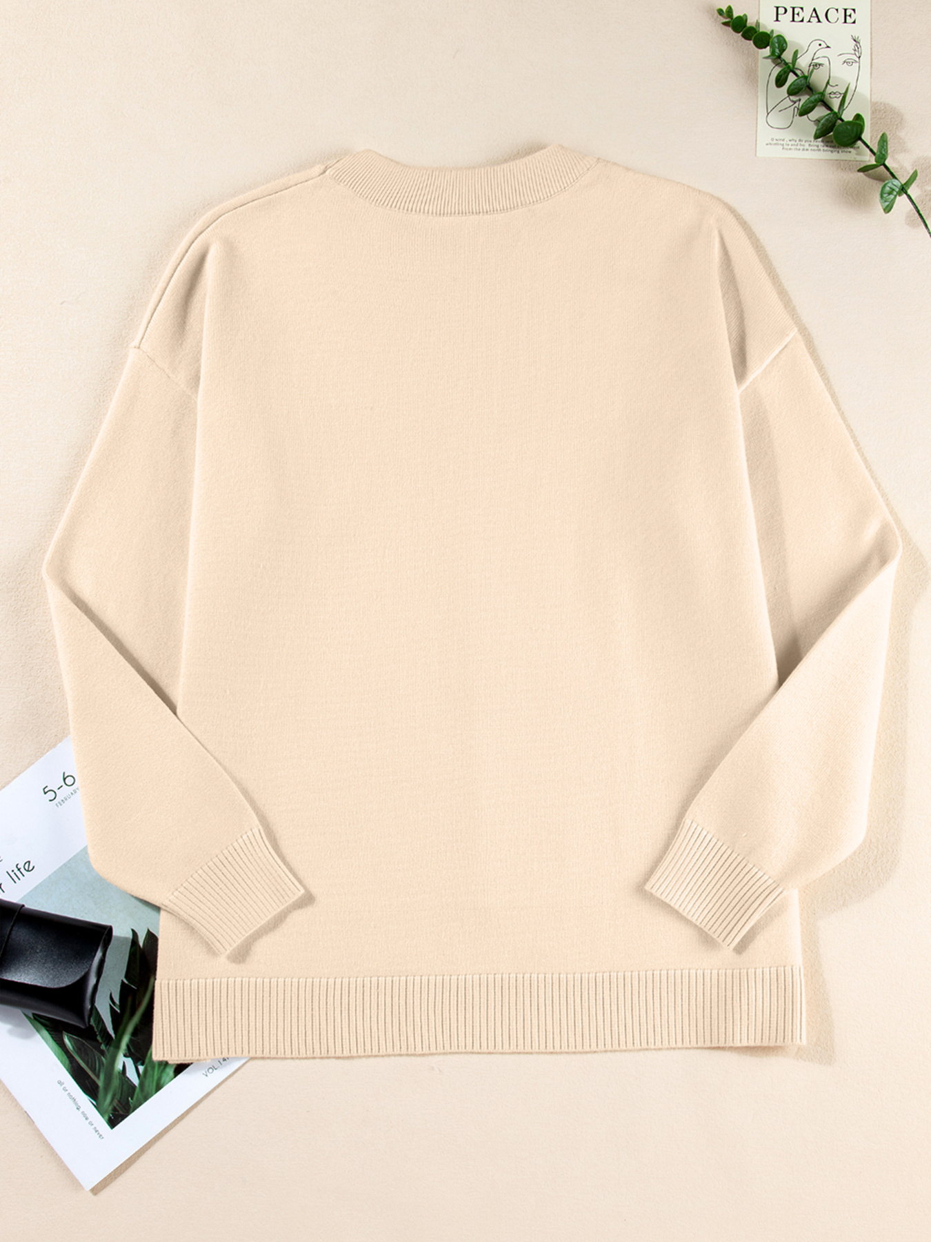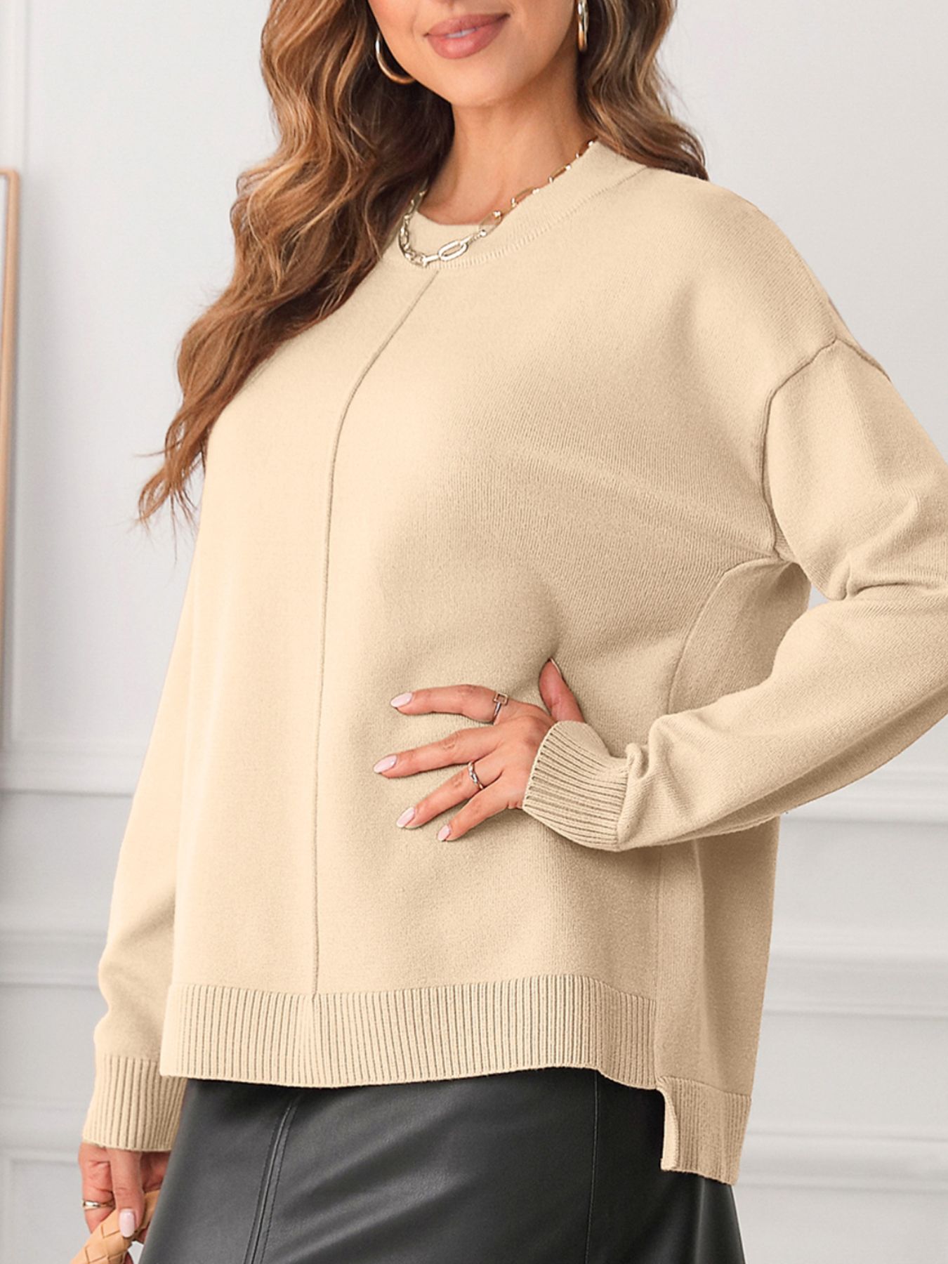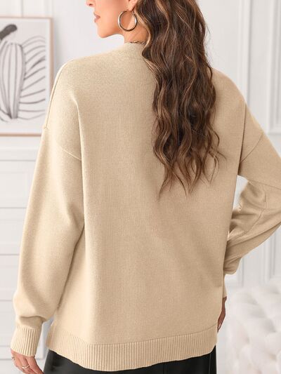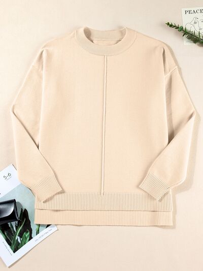 Front Center Seam Drop Shoulder Solid Sweater