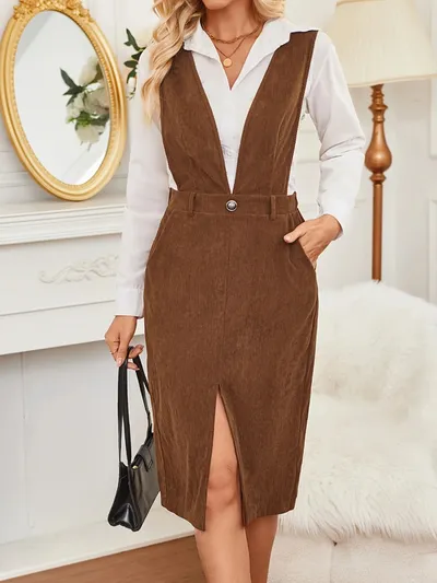 Front Slit Overall Dress with Pockets