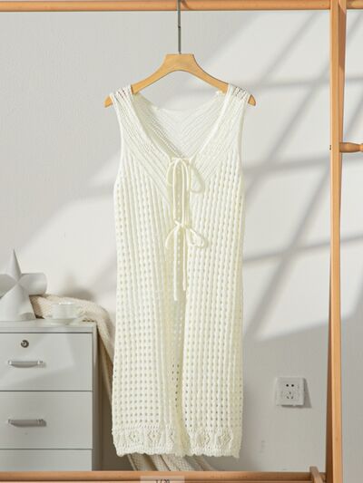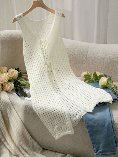Front Tie Crochet Sleeveless Longline Cardigan