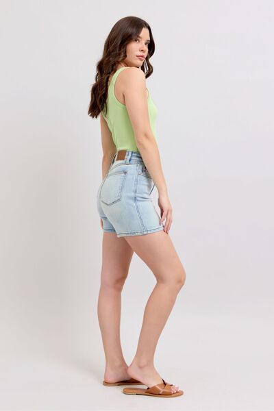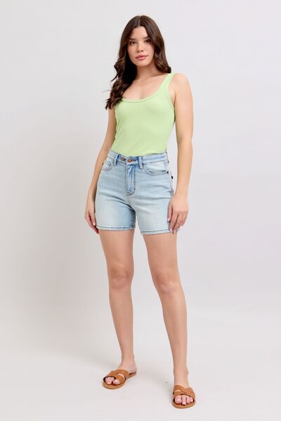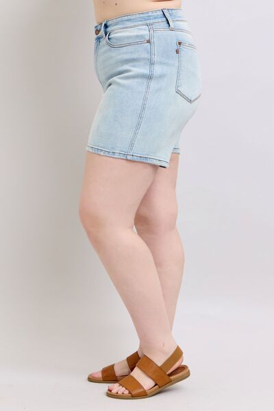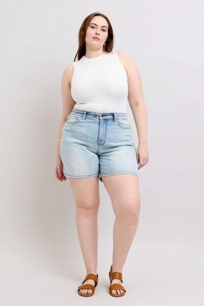 Full Size 2 Button Denim Shorts with Pockets Plus Size
