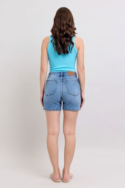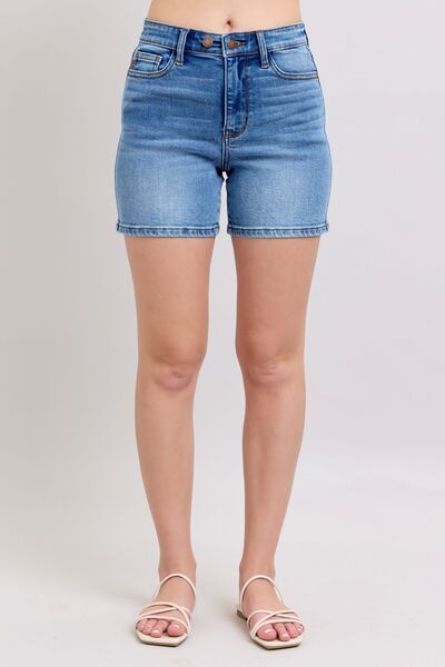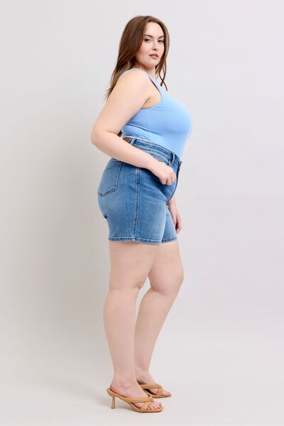 Full Size 2 Button Denim Shorts with Pockets Plus Size