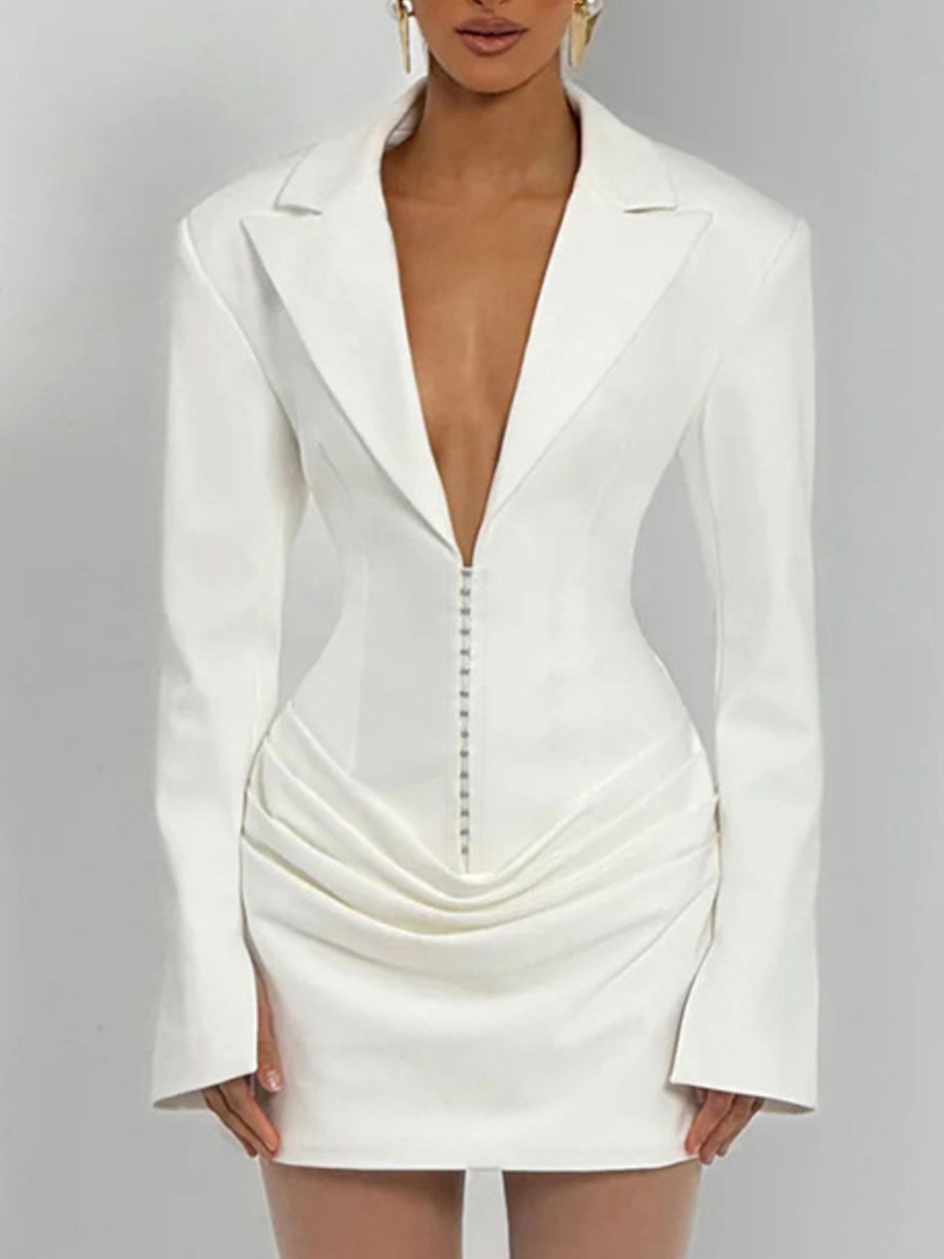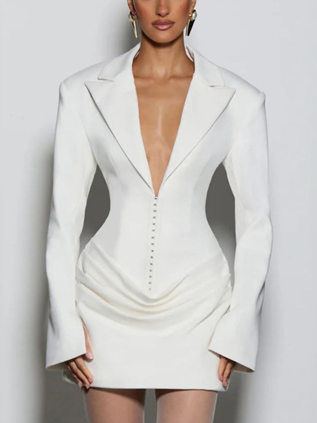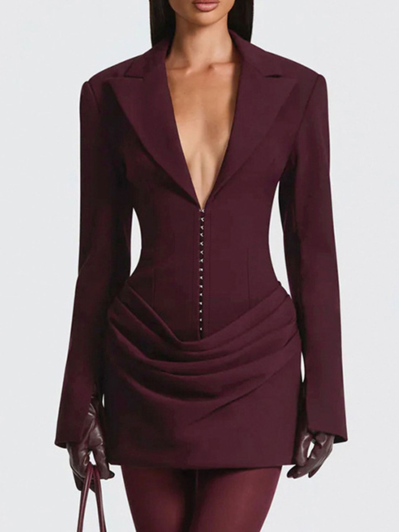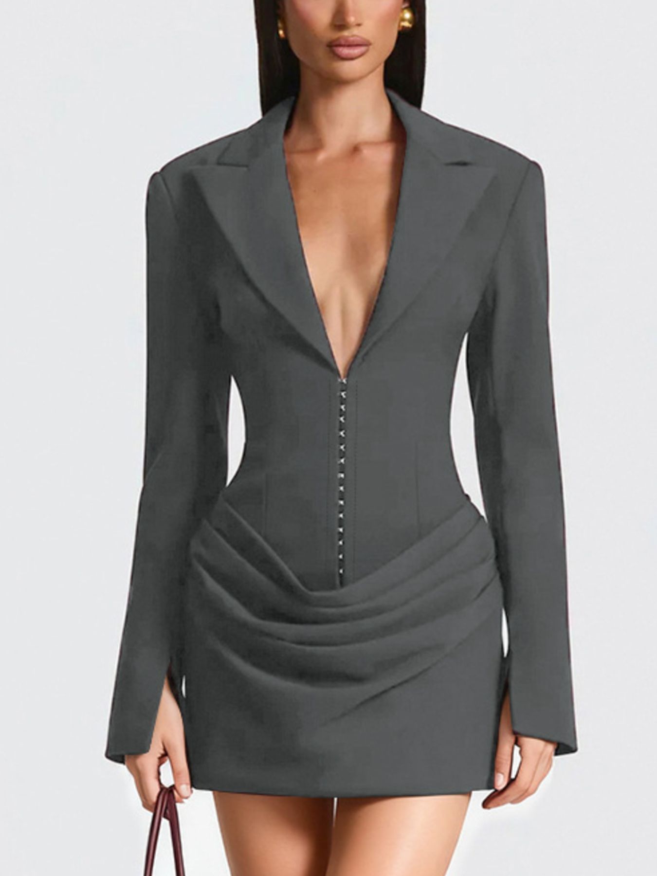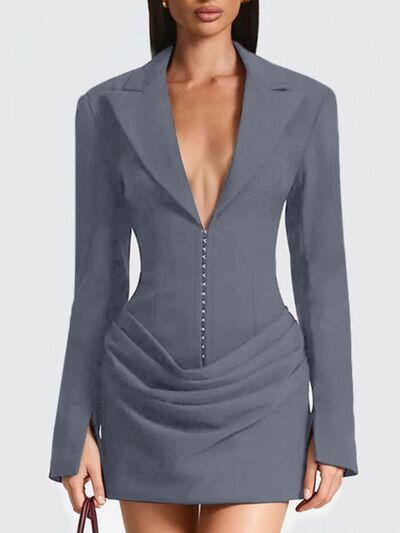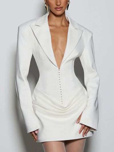 Full Size Blazer-Style Long Sleeve Mini Dress Plus Size