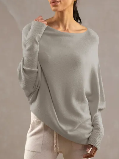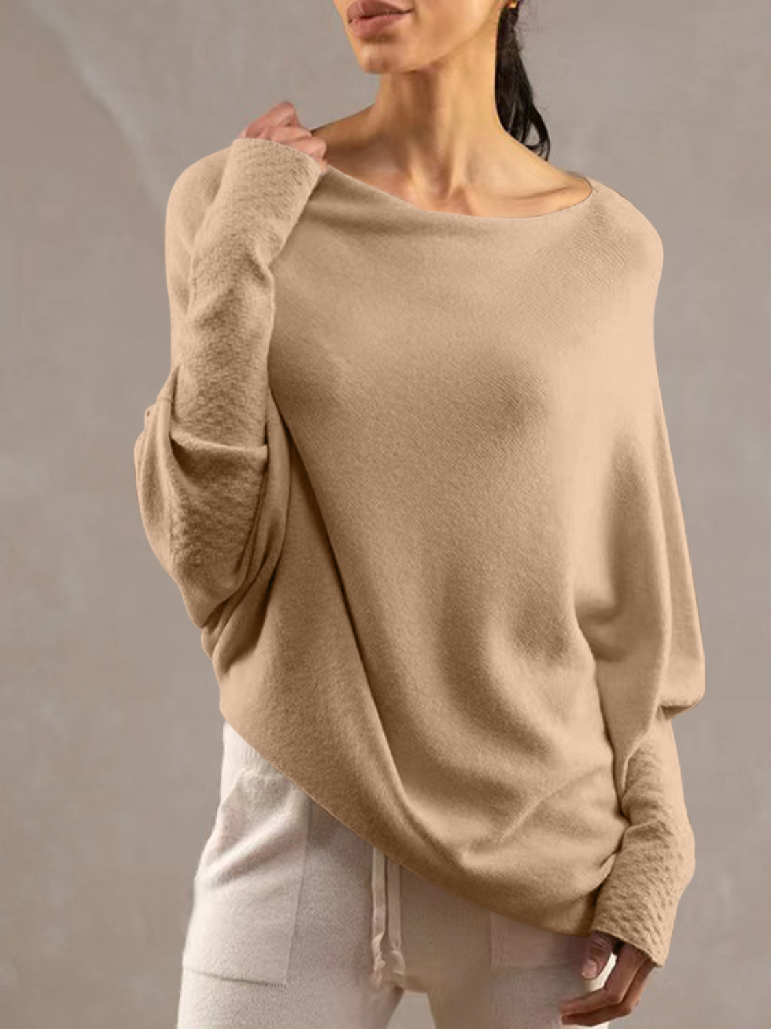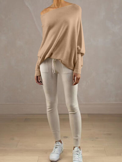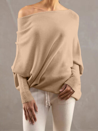 Full Size Boat Neck Batwing Sleeve Knit Top