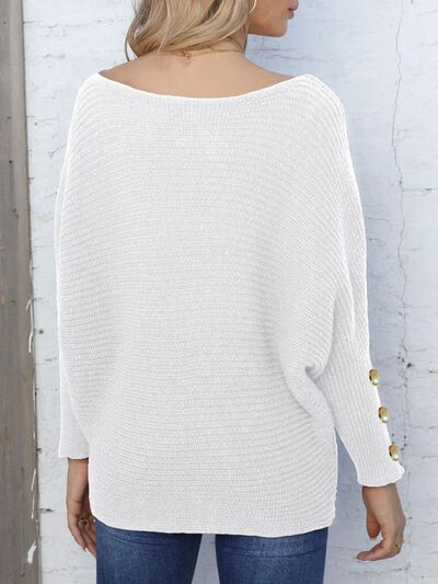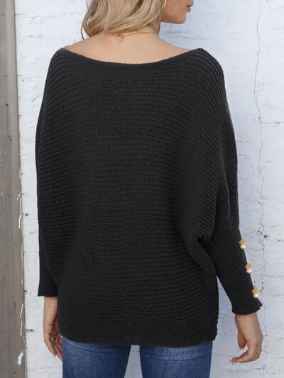 Full Size Boat Neck Long Sleeve Sweater
