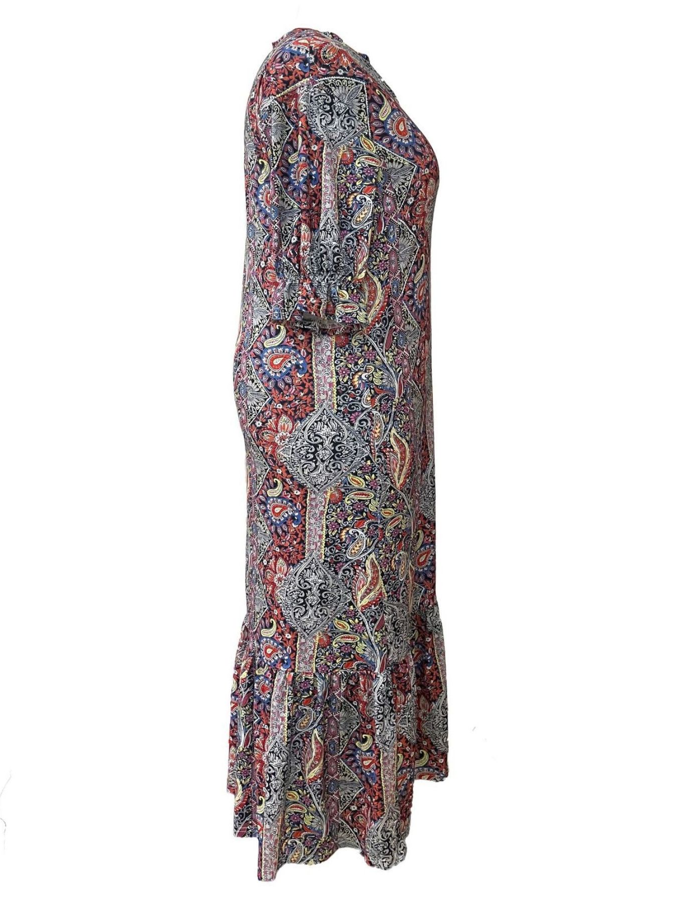 Full Size Bohemian Paisley Print Ruffle Hem Midi Dress Plus Size