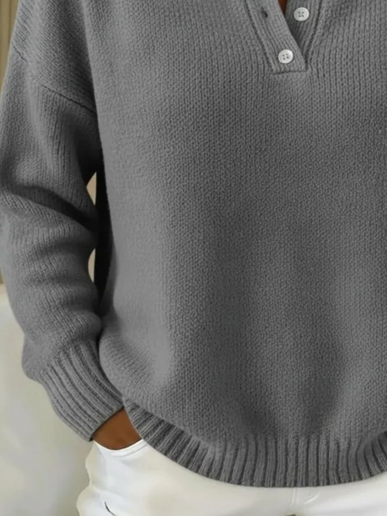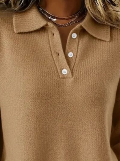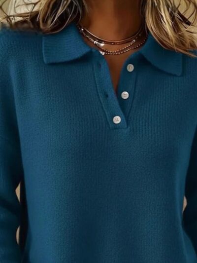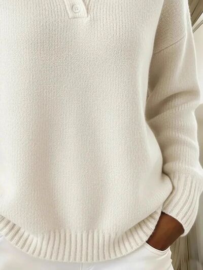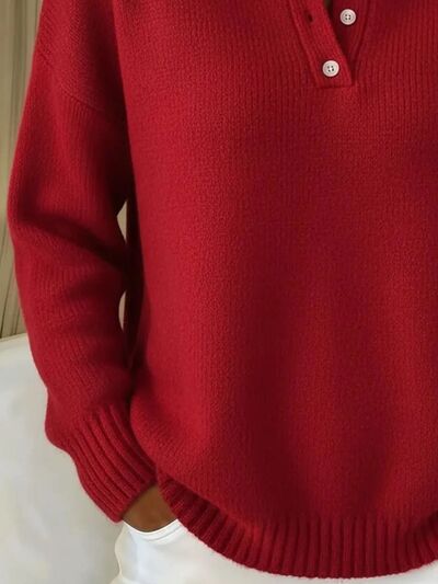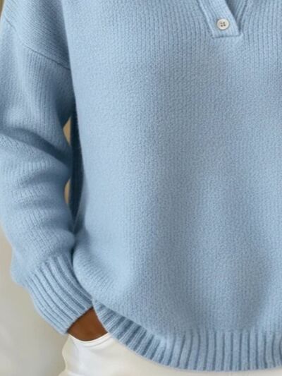 Full Size Button Detail Drop Shoulder Sweater Plus Size