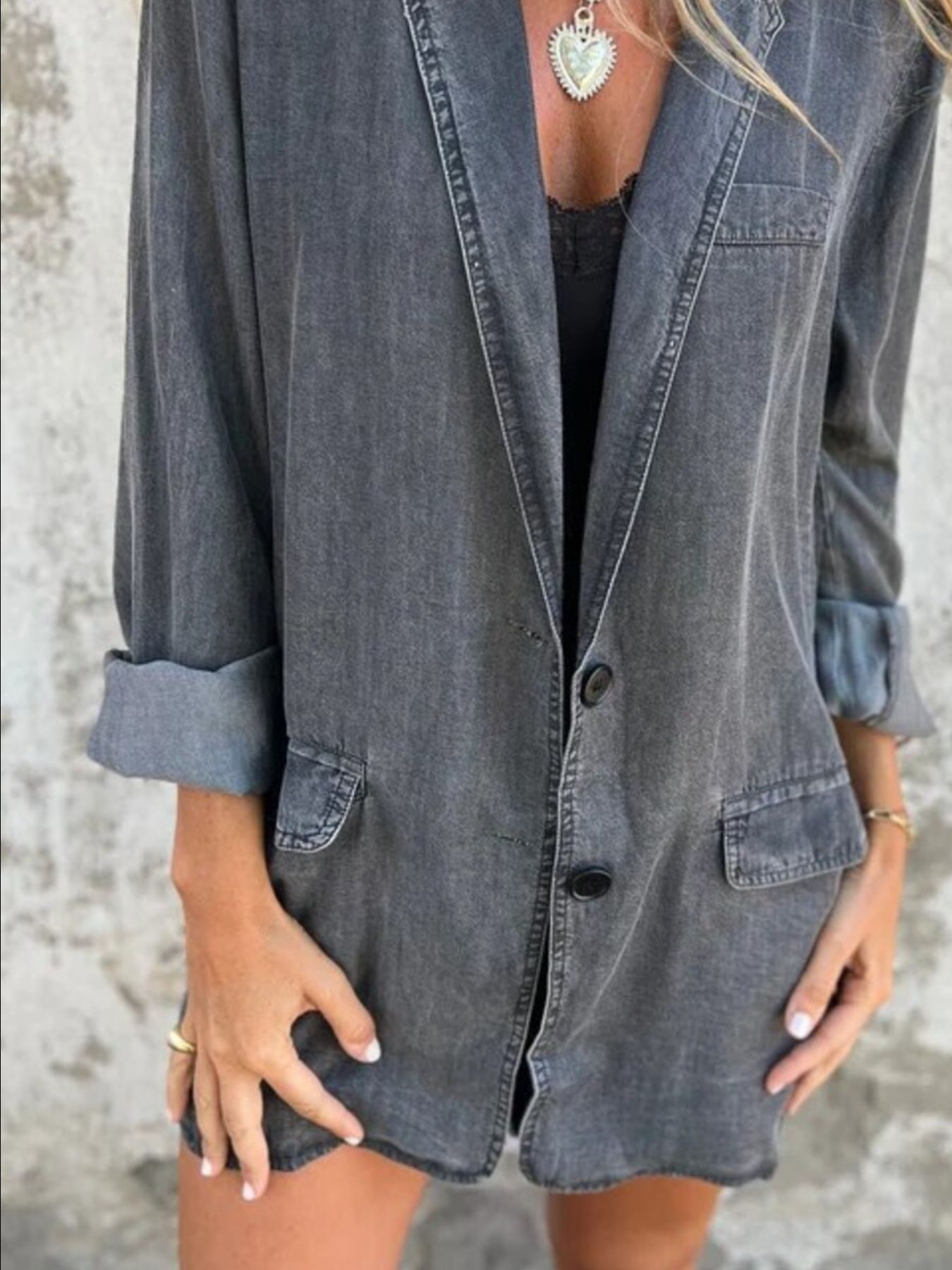 Full Size Button Down Denim Blazer Plus Size