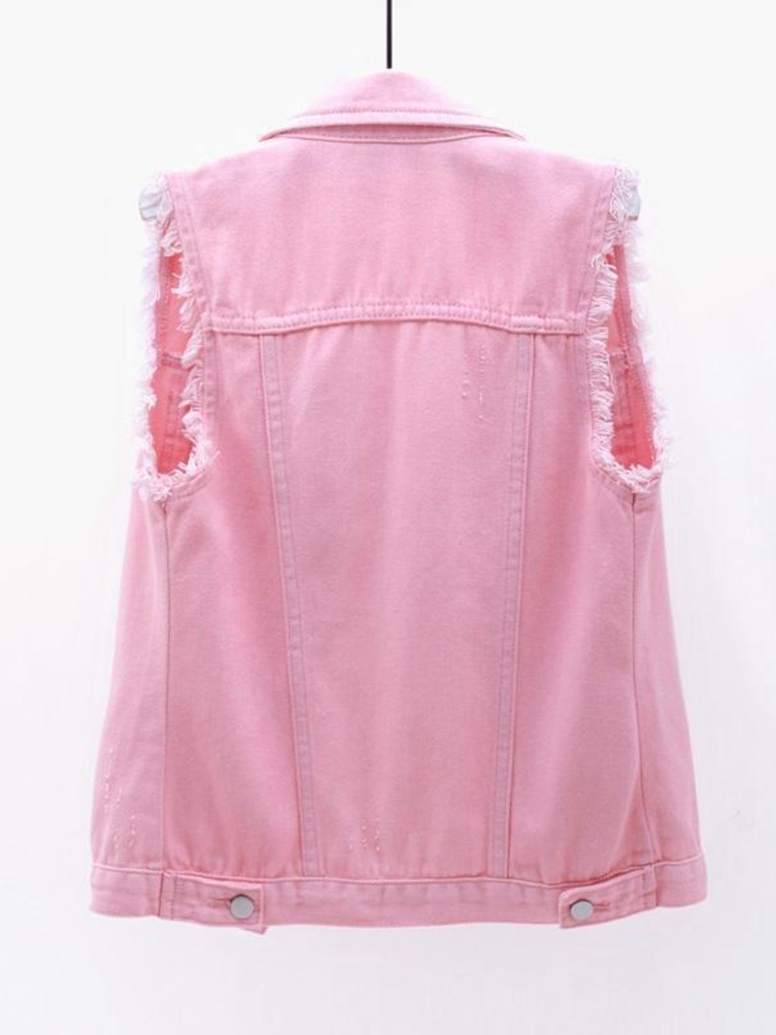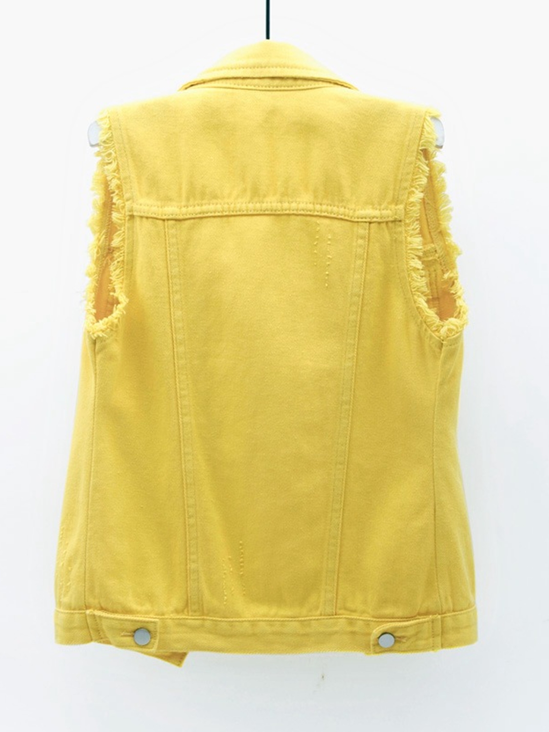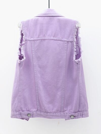 Full Size Button Down Raw Hem Sleeveless Denim Jacket Plus Size