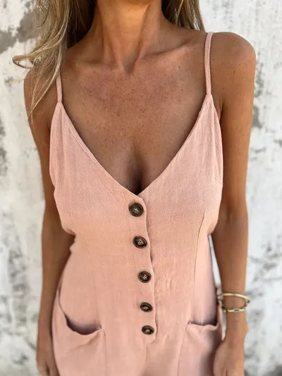 Full Size Button-Front Belted Cami Romper Plus Size