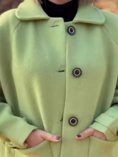Full Size Button-Front Raglan Sleeve Coat Plus Size