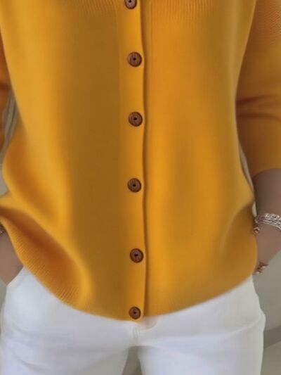 Full Size Button Up Long Sleeve Cardigan Plus Size