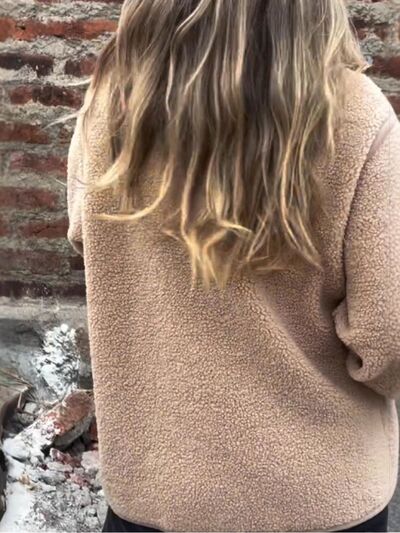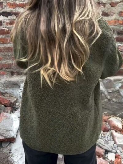 Full Size Button Up Long Sleeve Fleece Jacket Plus Size