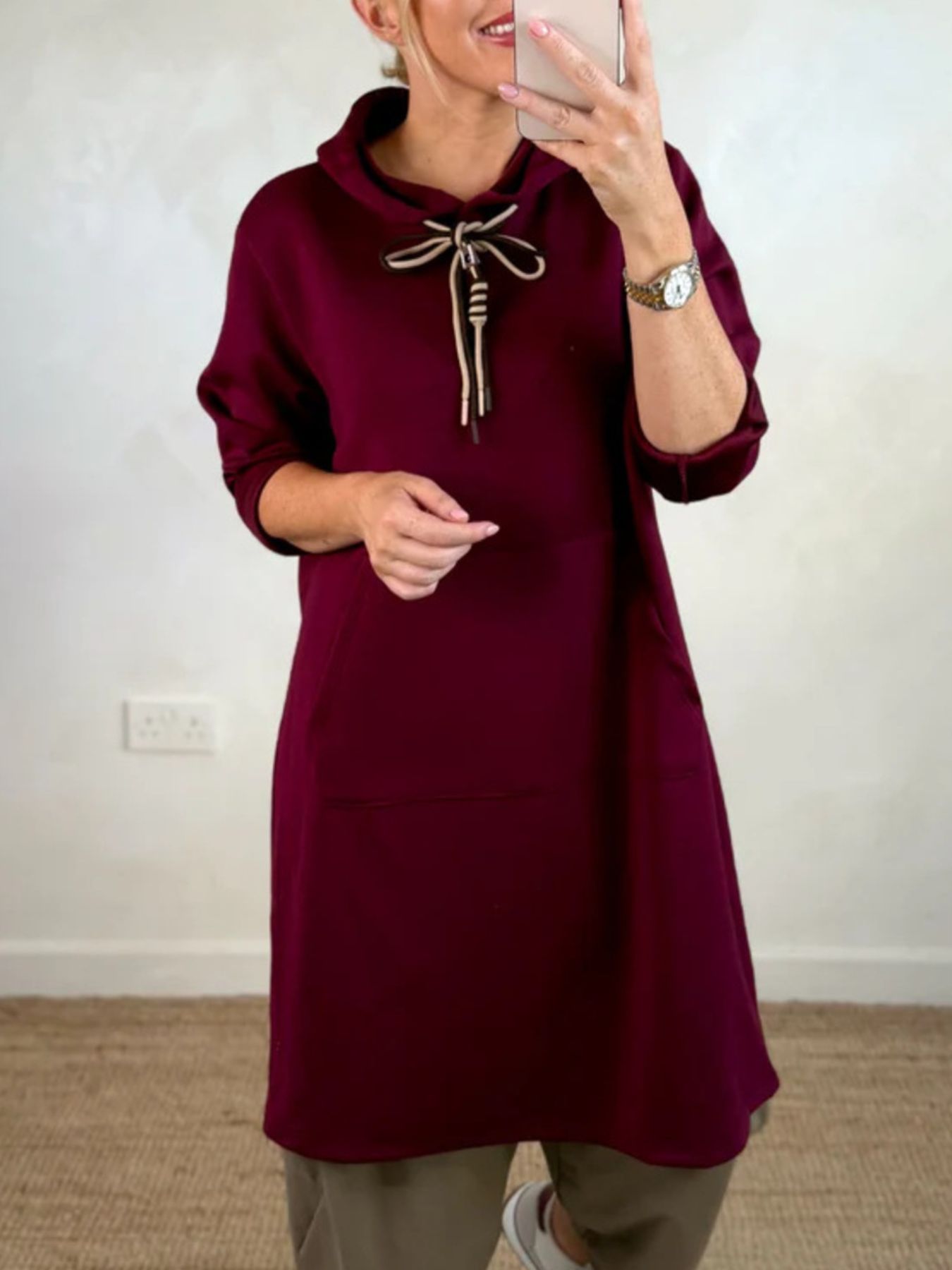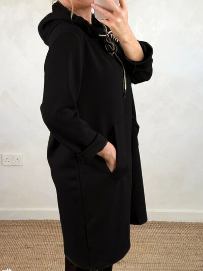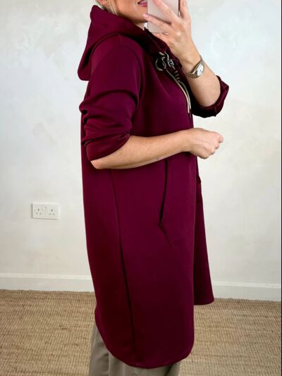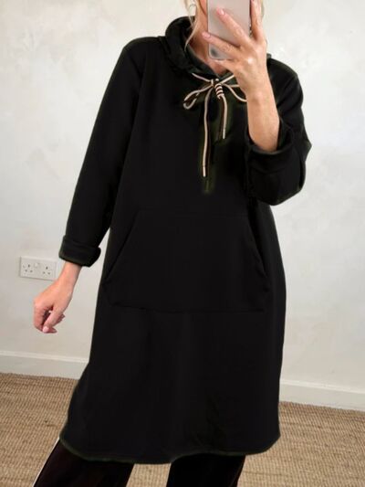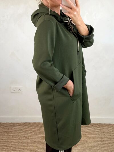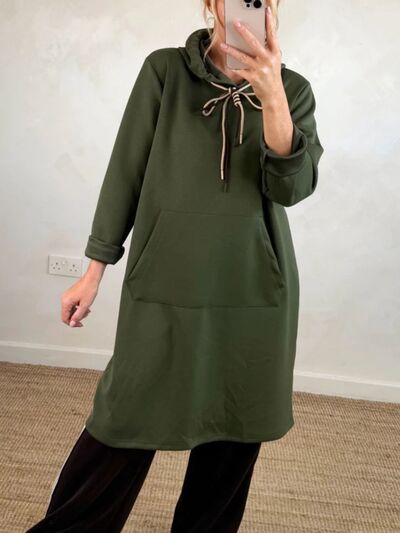 Full Size Casual Drawstring Hooded Sweatshirt Dress Plus Size