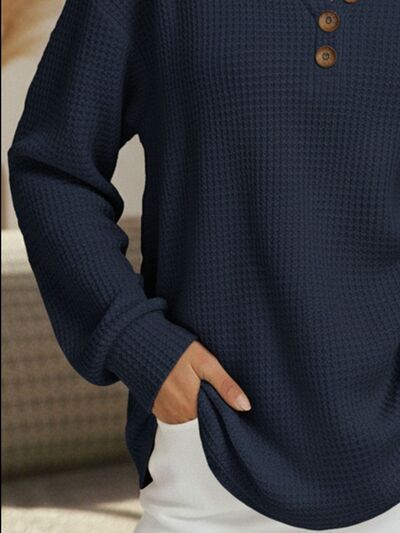 Full Size Casual Waffle Knit Long Sleeve T-Shirt Plus Size