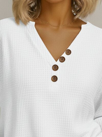 Full Size Casual Waffle Knit V-Neck Long Sleeve T-Shirt Plus Size