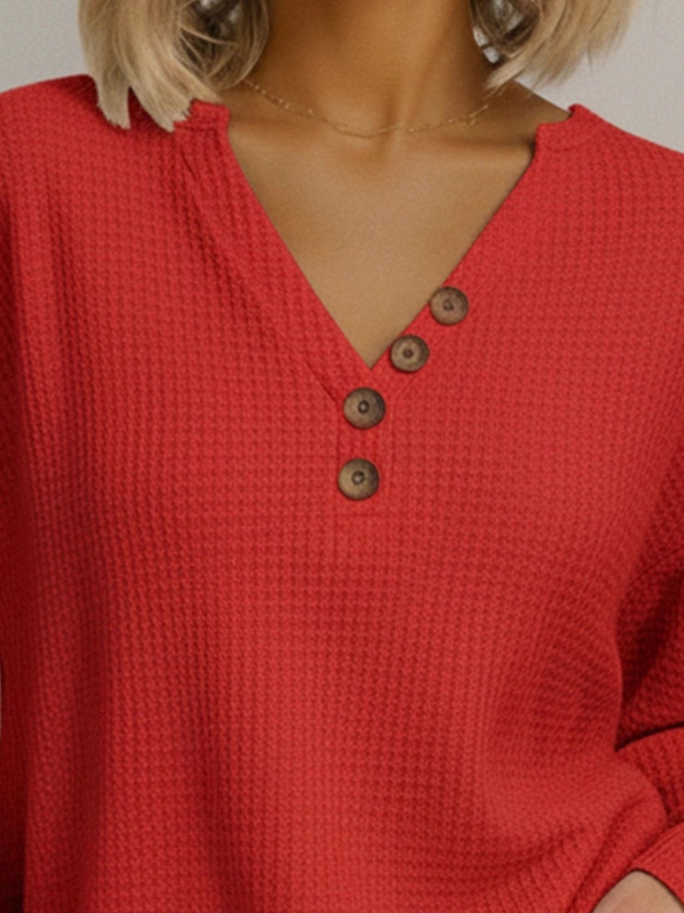 Features:Basic style,Waffle-Knit,Buttoned