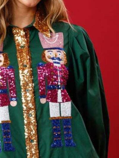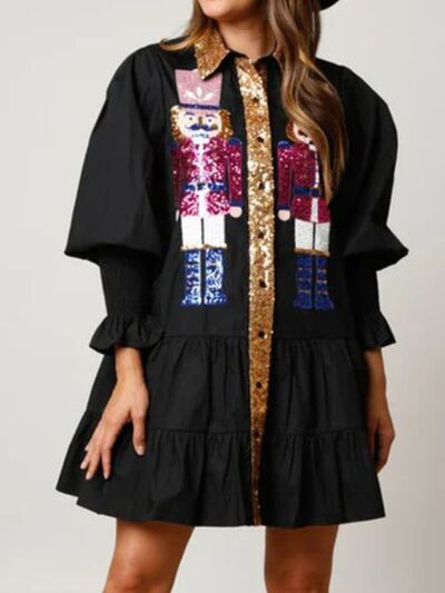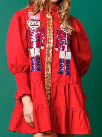 Full Size Christmas Sequin Nutcracker Tiered Shirt Dress Plus Size