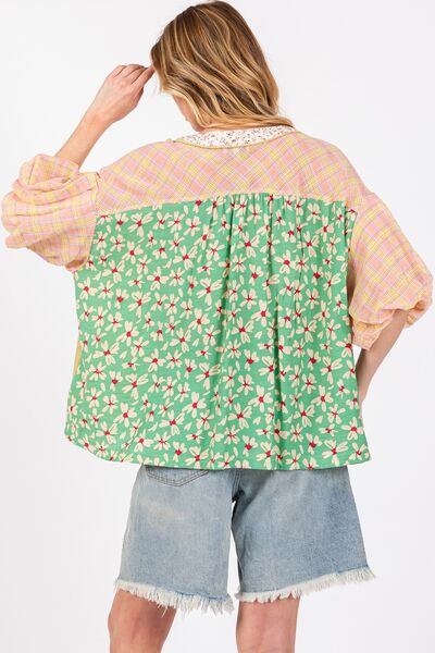Full Size Color Block Bubble Sleeve Top Plus Size