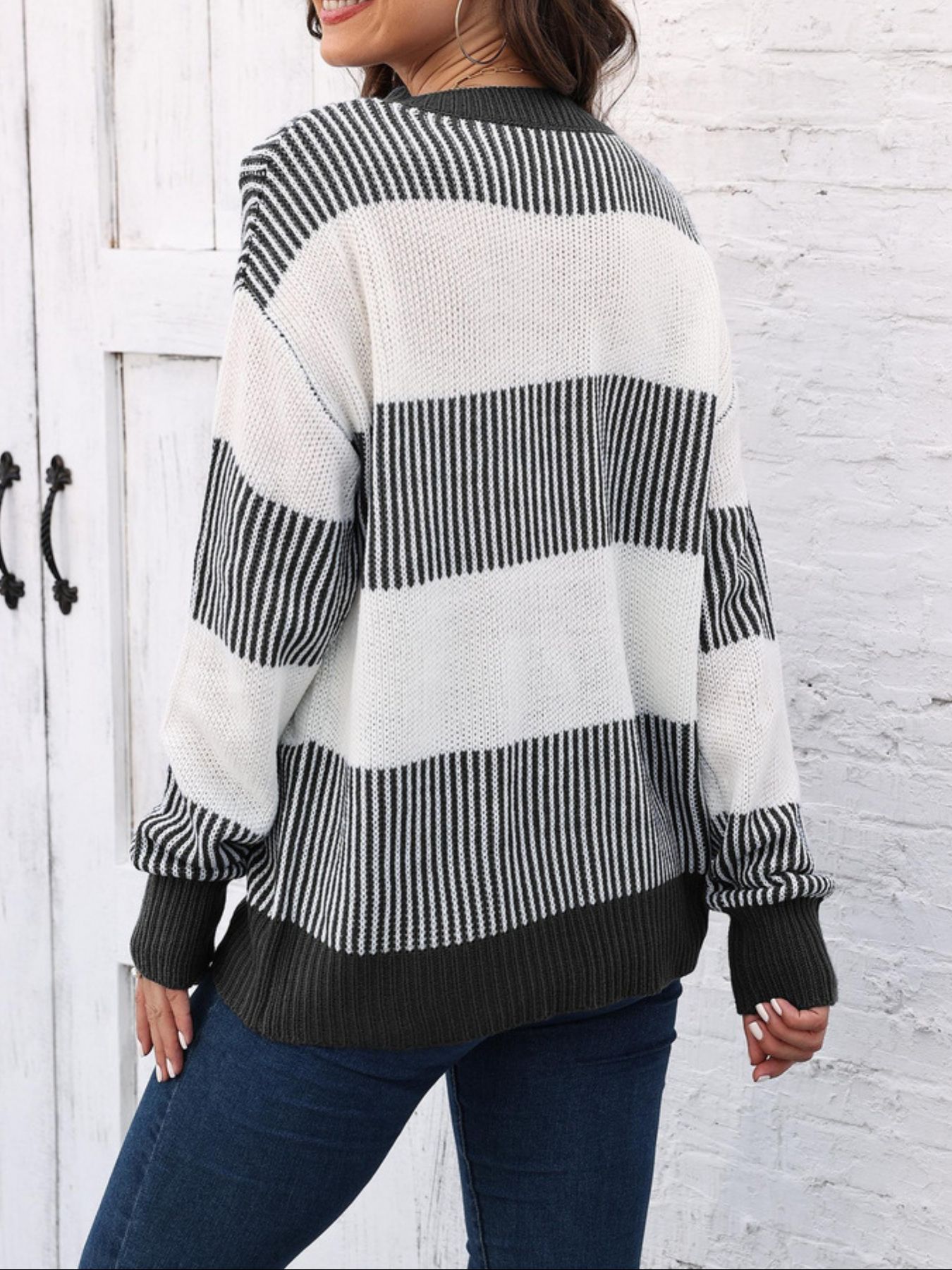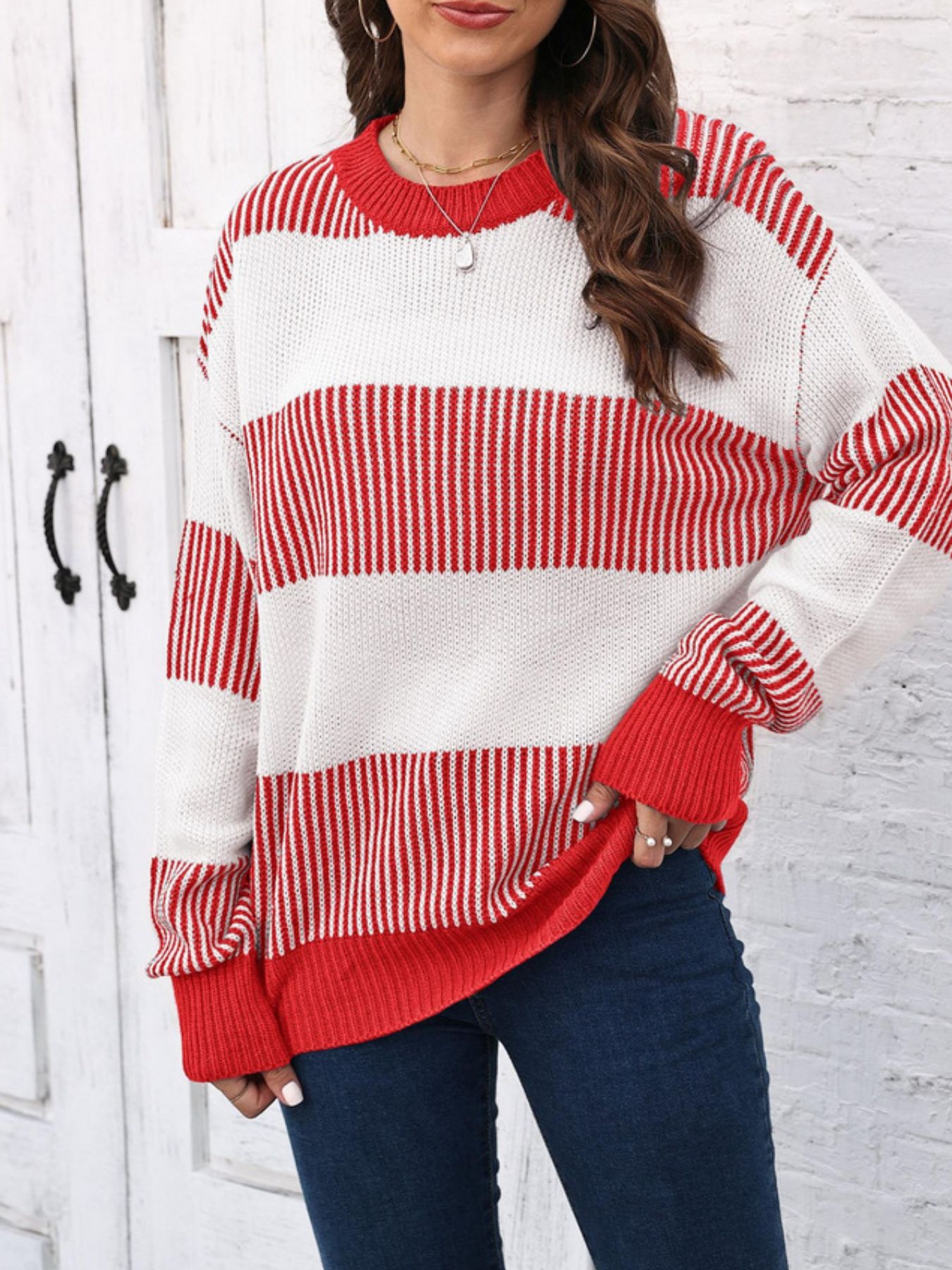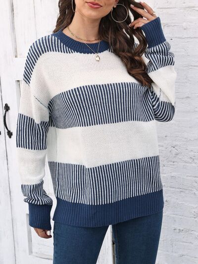 Full Size Color Block Dropped Shoulder Sweater Plus Size