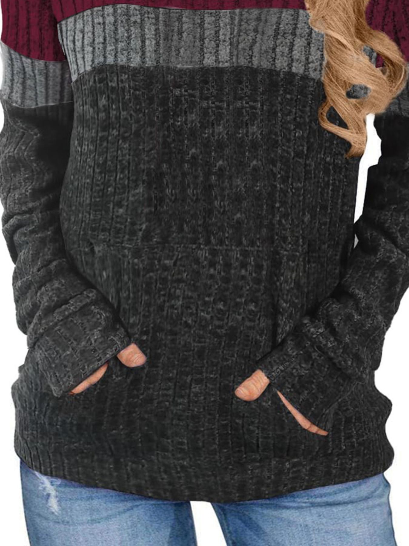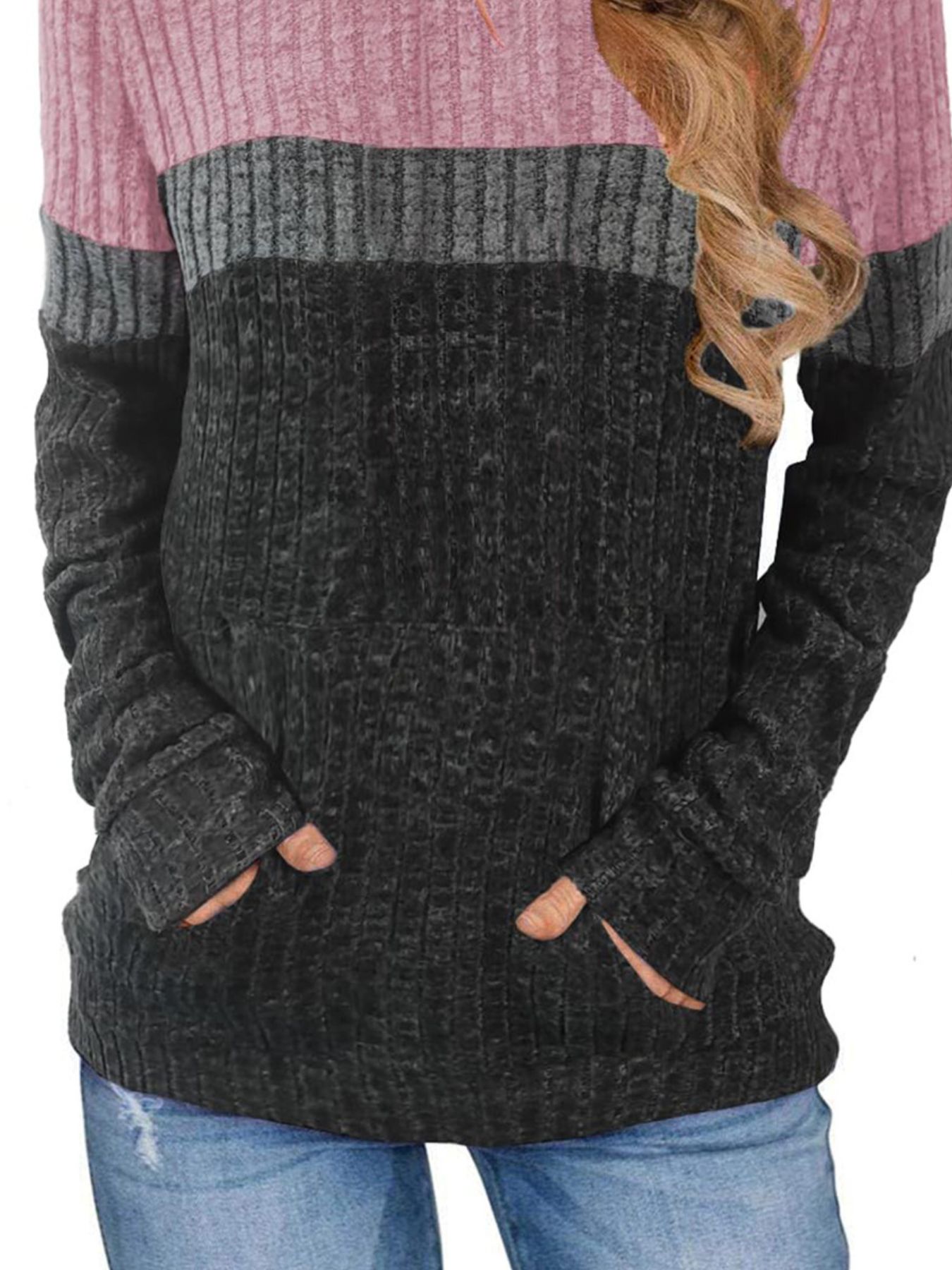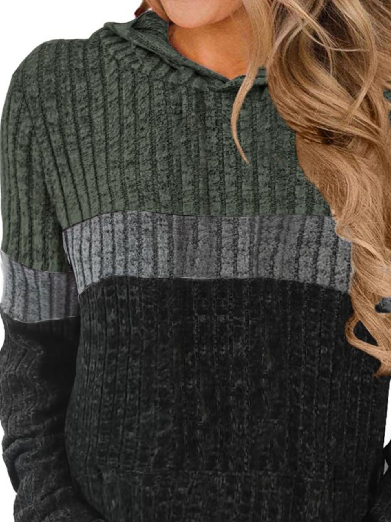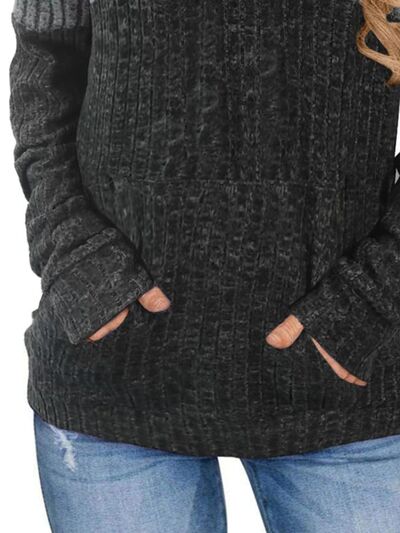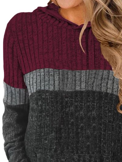 Full Size Color Block Ribbed Knit Hoodie Plus Size