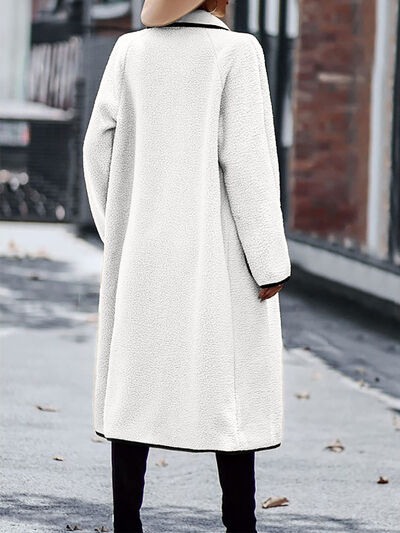 Full Size Contrast Trim Long Sleeve Coat with Pockets