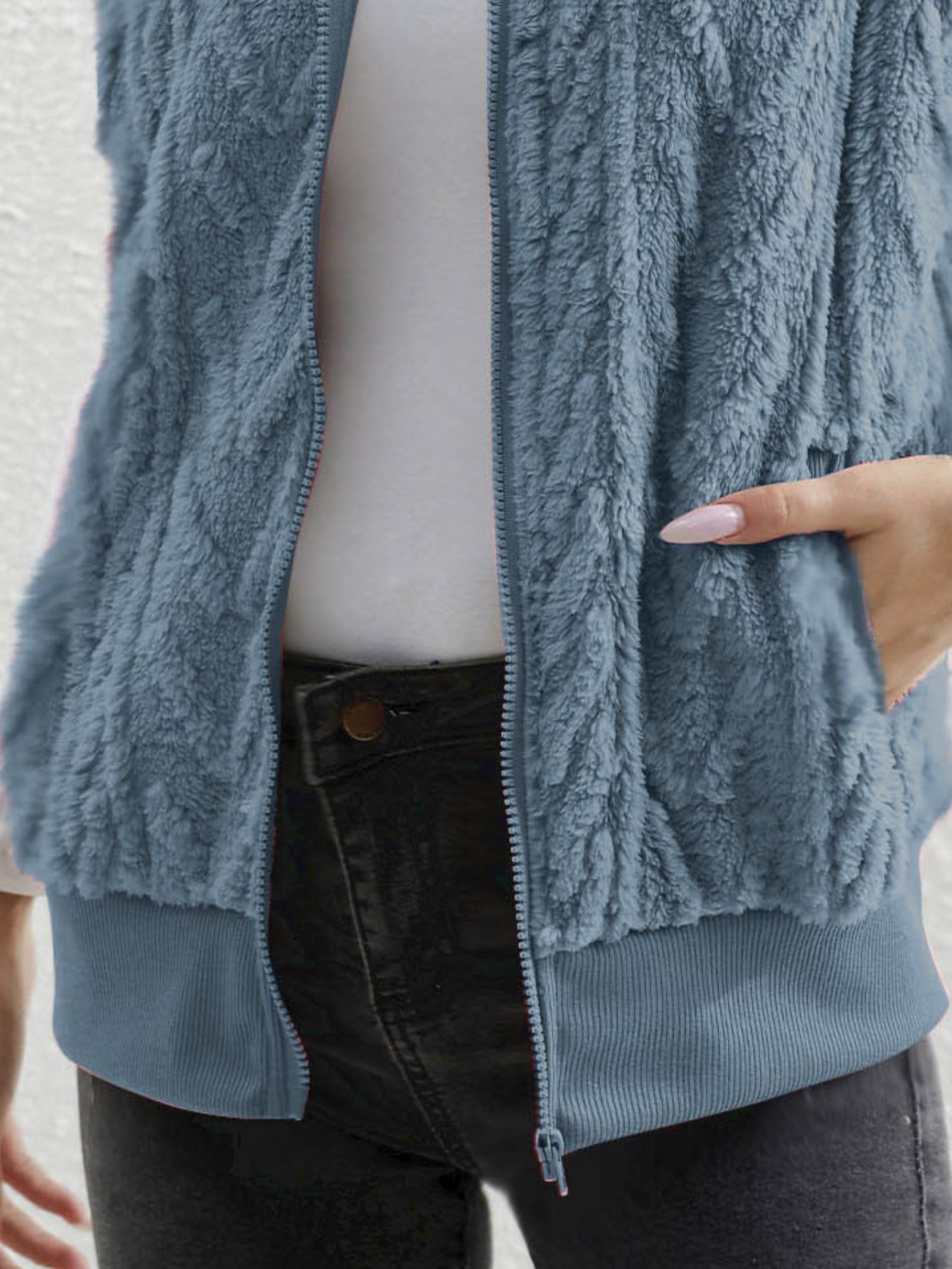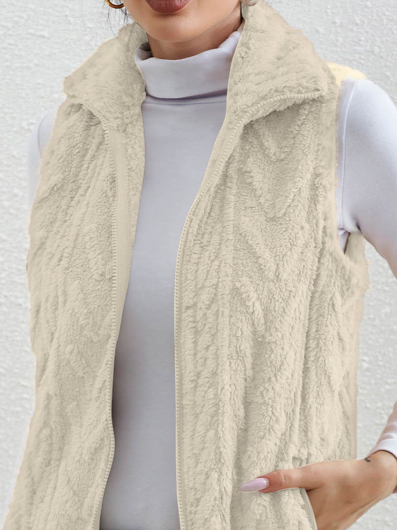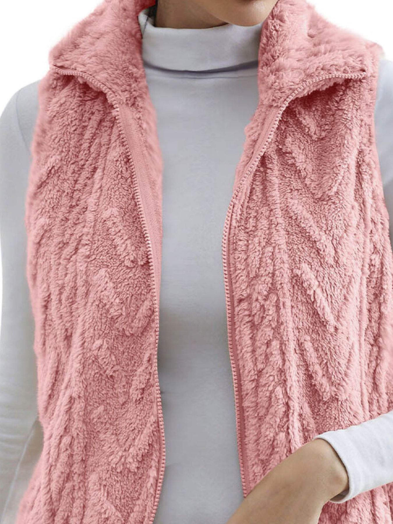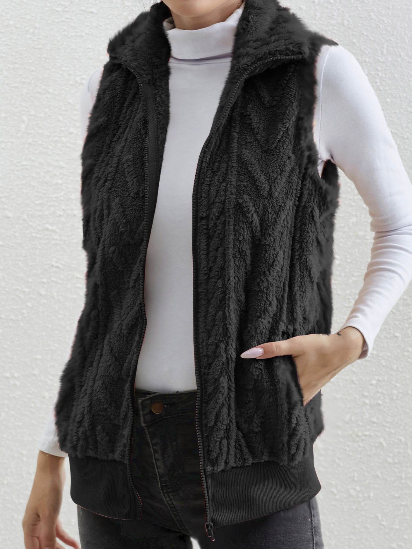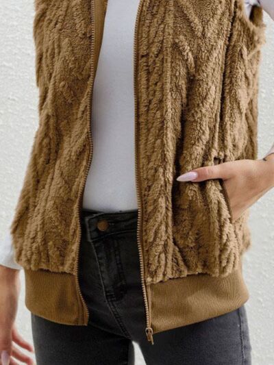 Full Size Cozy Faux Fur Zip-Up Vest Coat Plus Size