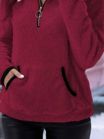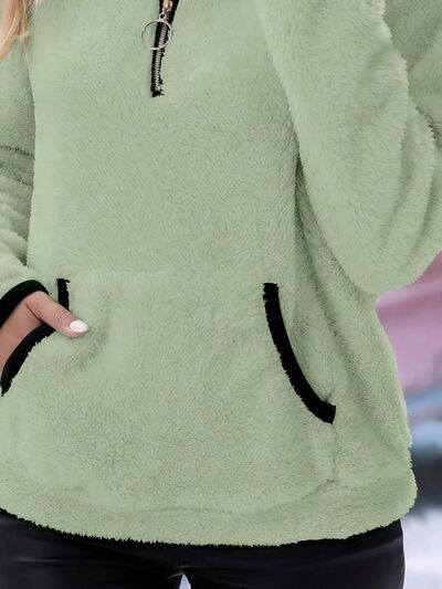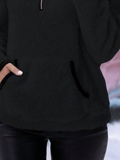 Full Size Cozy Fleece Quarter Zip Long Sleeve Sweatshirt Plus Size