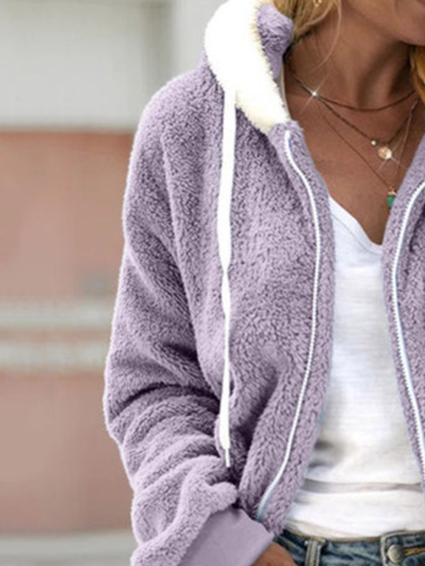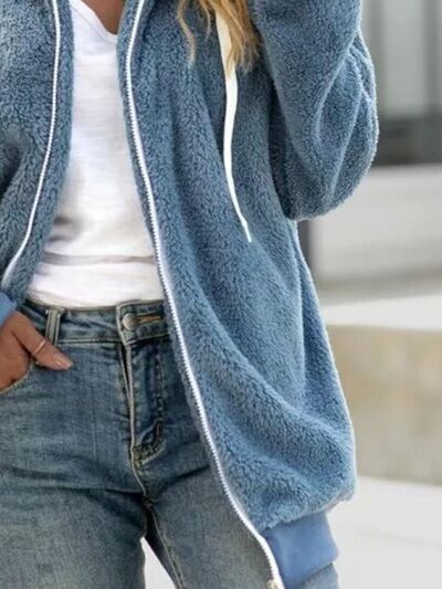 Full Size Cozy Fleece Zip-Up Hooded Jacket Plus Size