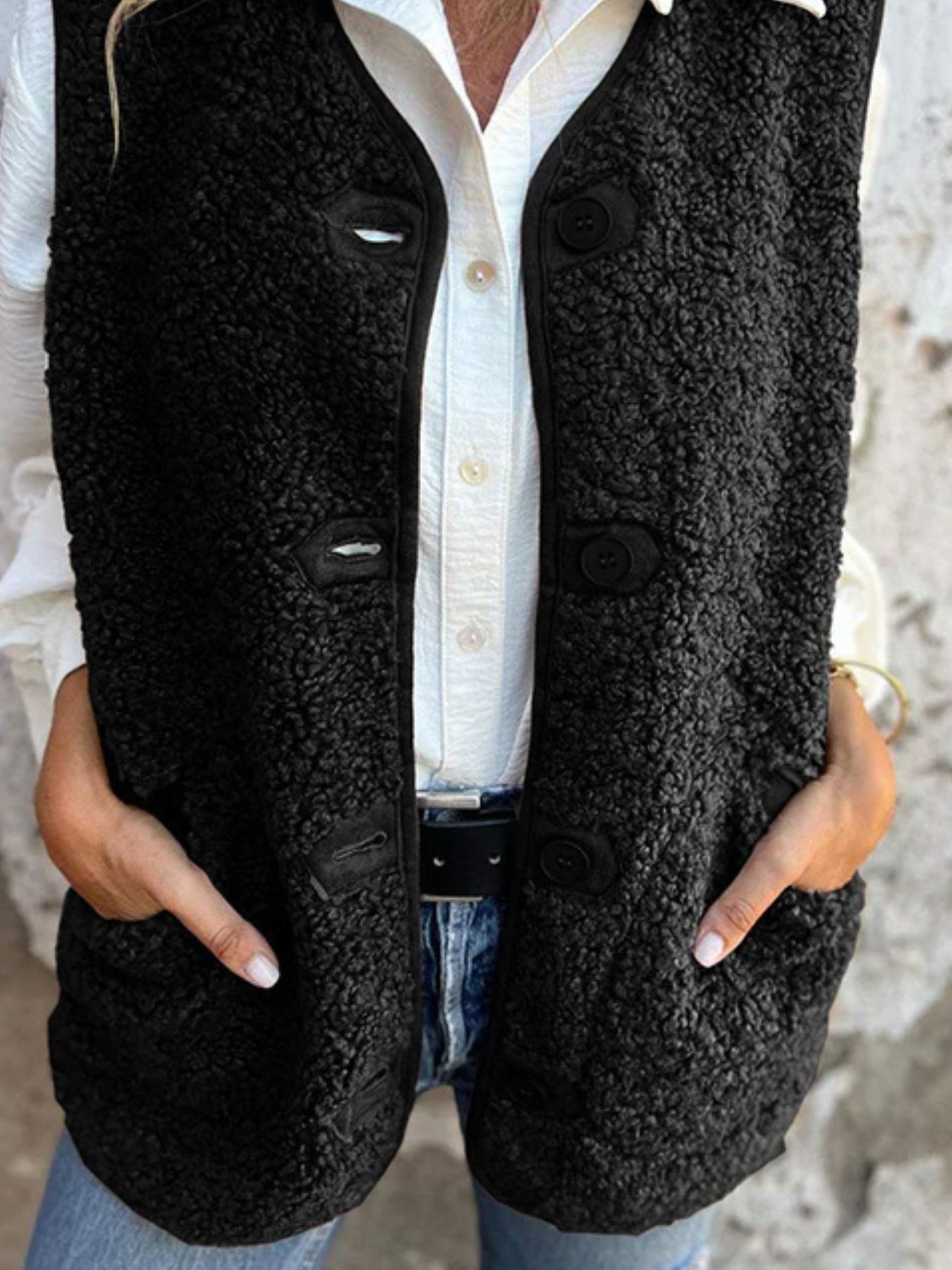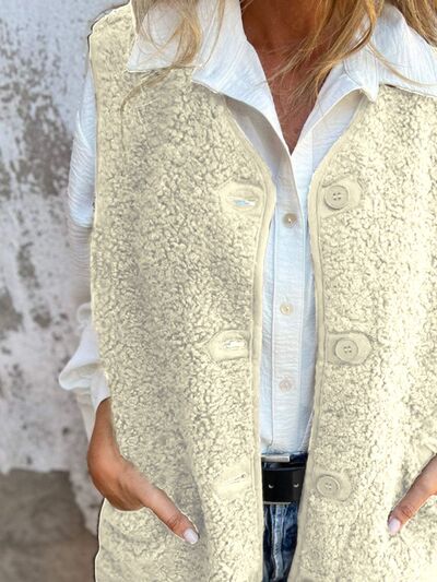 Full Size Cozy Sherpa Fleece Button-Up Vest Coat with Pockets Plus Size