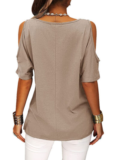 Full Size Crisscross Cold Shoulder Casual T-Shirt Plus Size