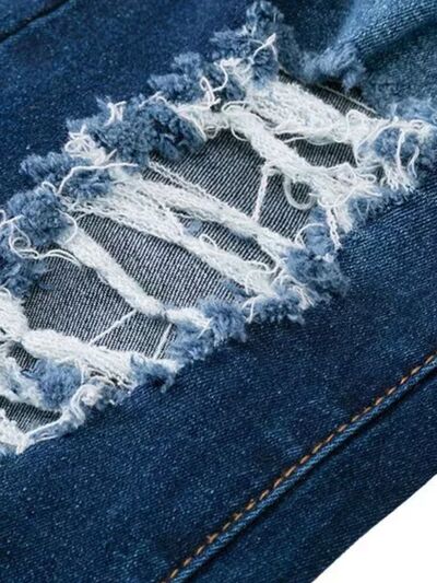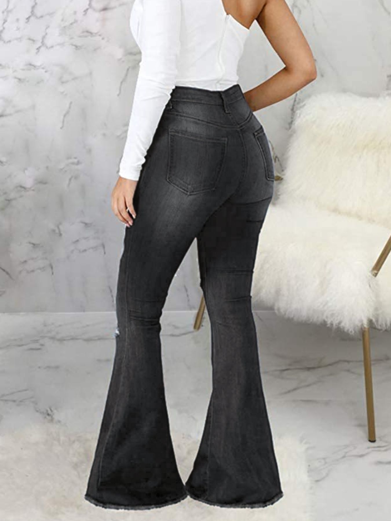 Full Size Distressed Raw Hem Flare Jeans Plus Size