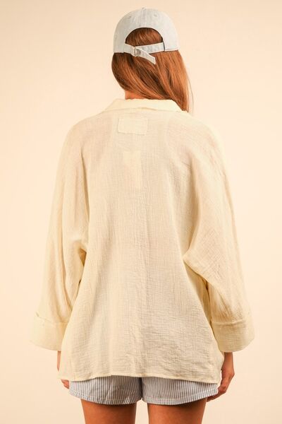 Full Size Dolman Sleeve Button Down Gauze Shirt Plus Size
