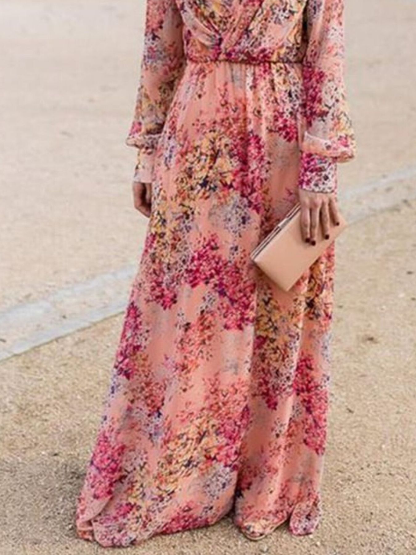 Full Size Floral Print Long Sleeve Maxi Dress Plus Size
