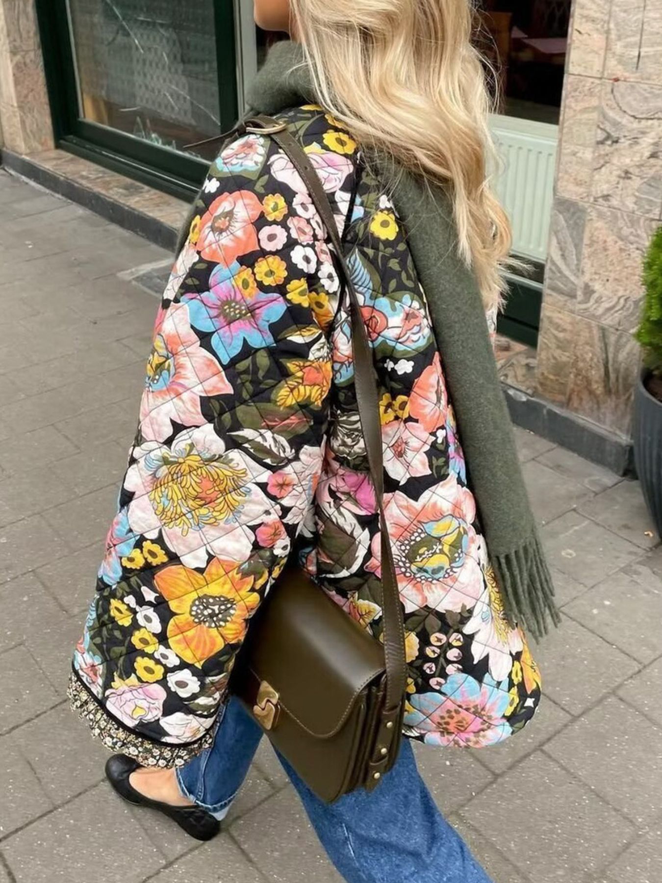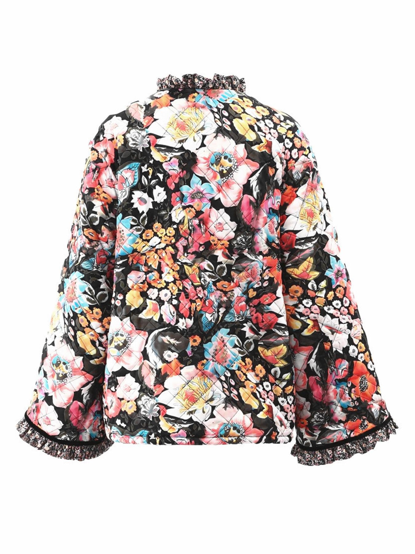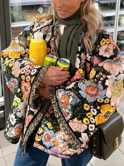 Full Size Floral Print Quilted Sherpa-Lined Jacket Plus Size