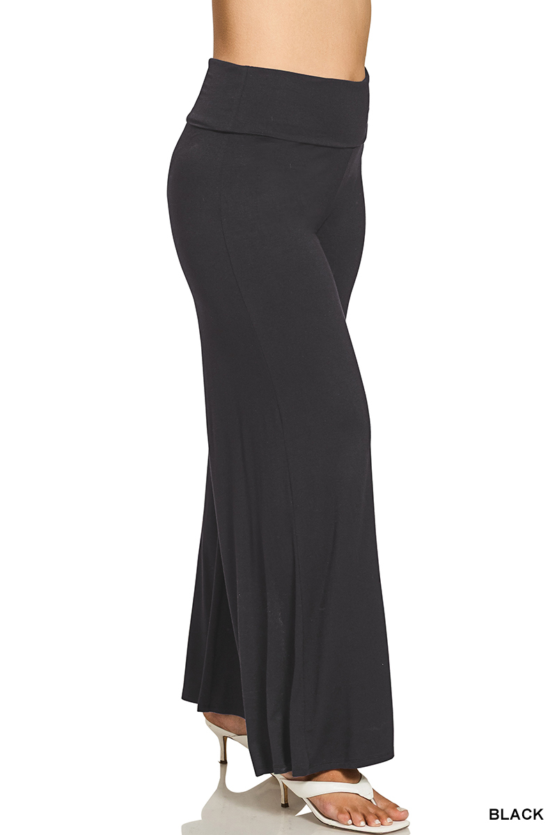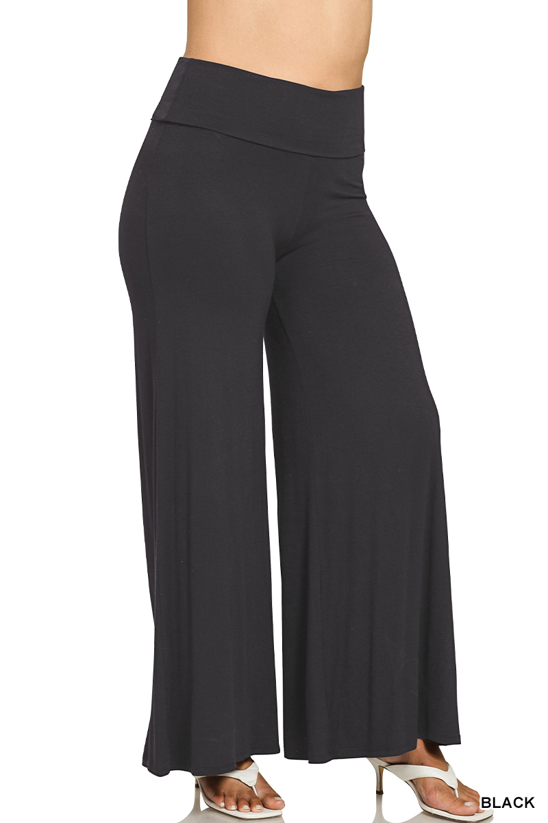 Full Size Fold Over Waist Comfy Wide Leg Pants Plus Size