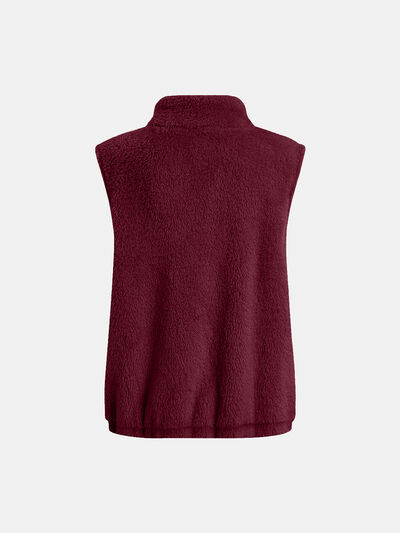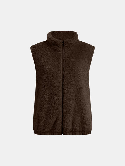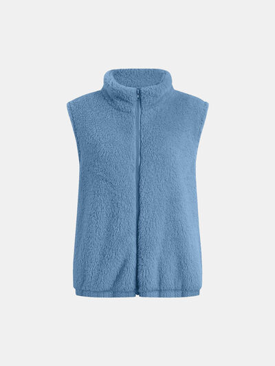 Full Size Fuzzy Zip Up Vest Coat with Pockets